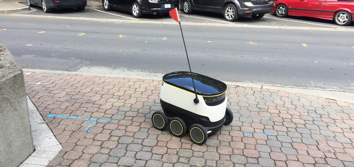 Doordash, a startup founded in 2013 by several Stanford students, plans to roll-out the use of delivery robots to the rest over the US. Here are recordings of one of the robots roaming a sidewalk and crossing a crosswalk.