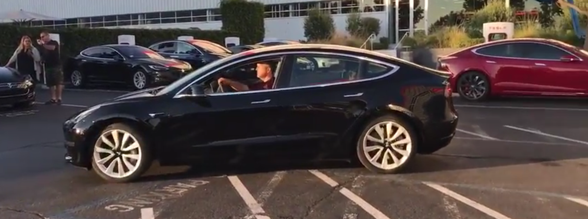 After the first pictures of the Model 3 with the Serial Number 1 were posted this past Friday, a first video of the very same vehicle outside the Tesla-factory in Fremont appeared.