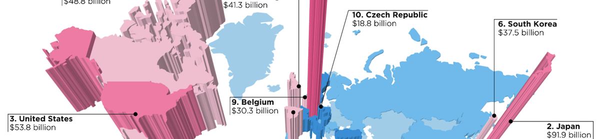 The auto export nation number one is Germany with 151.9 billion dollars (138 billion Euro). When we talk about the risks of a collapse of the German automotive industry, then we better understand why this is industry is to important for Germany (and Europe in general). That’s why the upcoming disruptions with autonomous, electric, shared and connected driving is so disruptive for the economy.