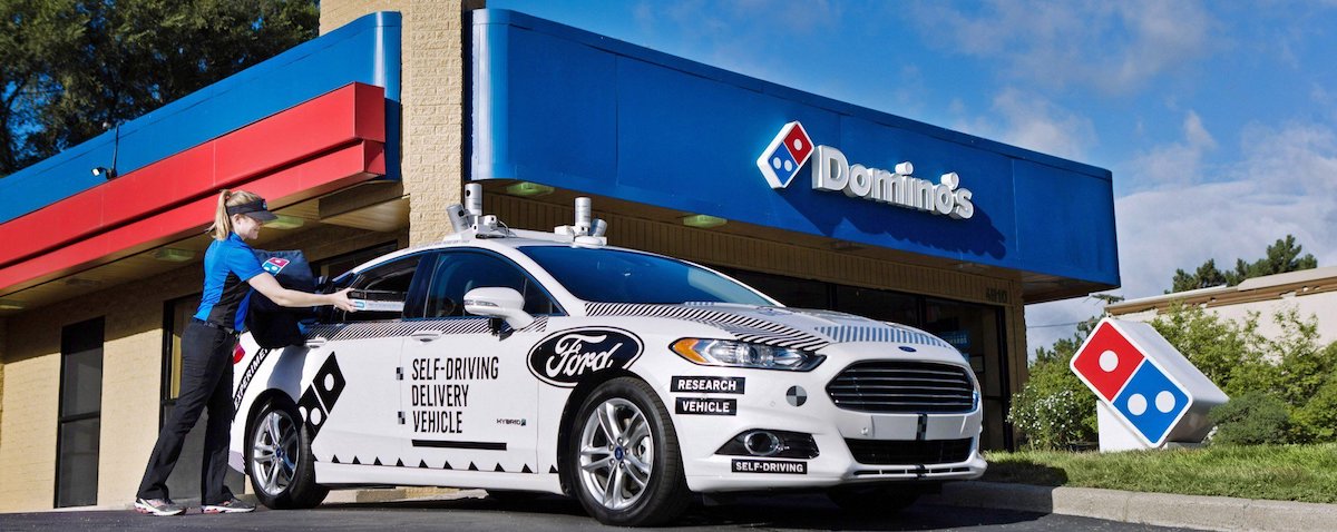 Last summer Ford collaborated with pizza chain Domino’s to deliver pizza. Ford’s self-driving test vehicles drove fresh pizza in Ann Arbor in Michigan to customers. Even if it looks a bit like an overkill for a simple pizza delivery robot, Ford is regarding such a use case as the future.