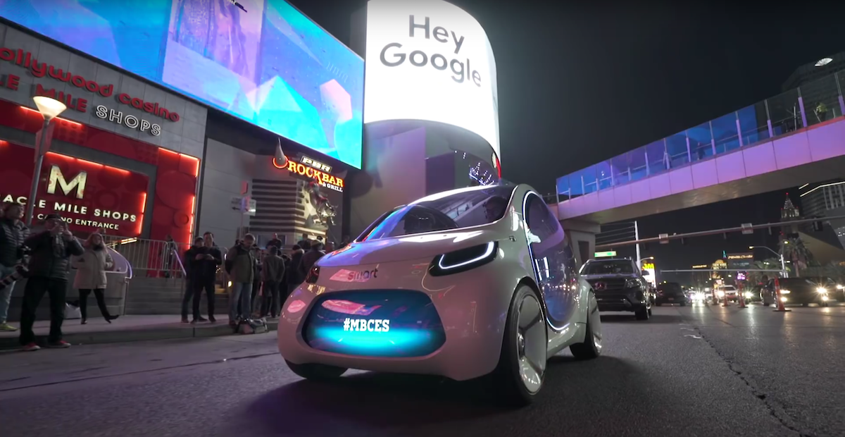 A report from a test ride at CES by The Verge tech-journalist Sean O’Kane gives a deeper glimpse. And it shows us Mercedes’ astonishing low level of ambition. With huge showmanship two of four lanes at the Strip in Las Vegas were closed for the Smart FourTwo vehicle. For the feat of rolling forth and back for a few meters. With the breath taking speed of 12 miles per hour.