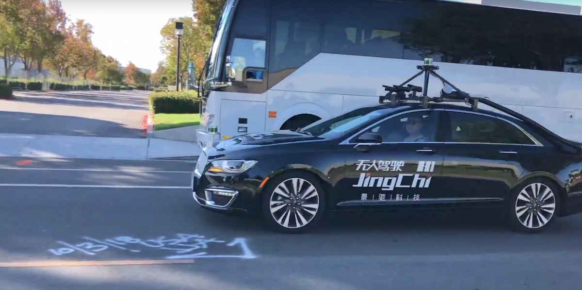An autonomous test vehicle of Chinese startup JingChi was spotted on Borregas Ave in Sunnyvale. Check out the camera array on top of the car.