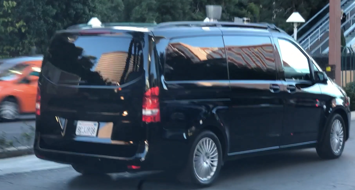 This unidentified autonomous Mercedes-Benz Van with a LiDAR mounted on the roof was spotted on January 9th, 2019 at around 10:45am on the Las Vegas Boulevard (‘Strip’) stuck in CES 2019 traffic.