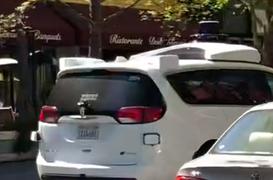 This Waymo with a new LiDAR on the roof top and sensor setup was spotted on Sunday April 21st, 2019 at around 10:30am on Castro Street in Mountain View. The signage on the car side says “Waymo Engineering”, pointing at a development vehicle in contrast to the usual Waymo robotaxis seen in Mountain View.