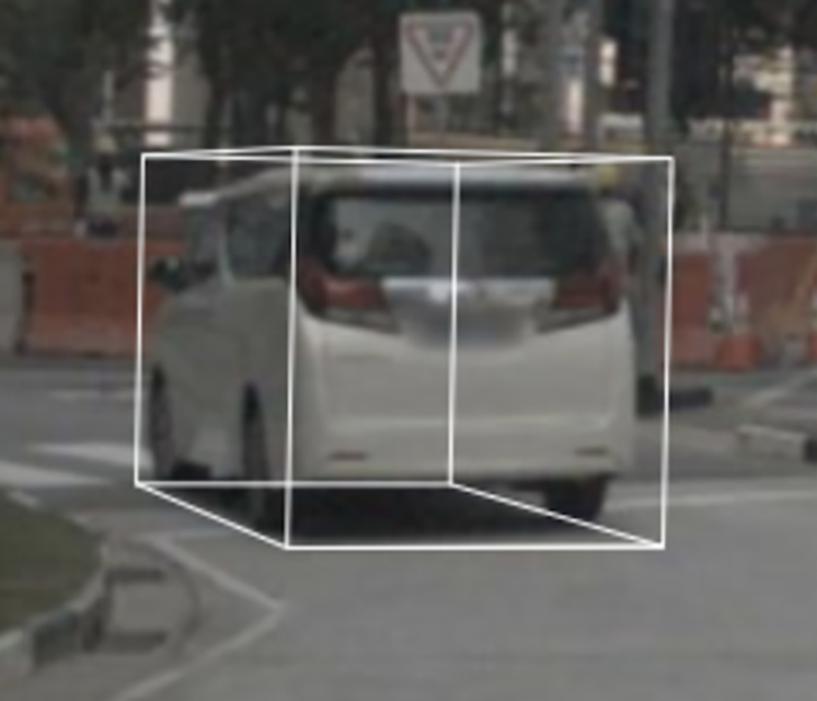 In 2D a few pixels of inaccuracy between the LiDAR + Camera annotation (white) and the Camera-only annotation (orange) becomes a much larger error when projected into 3D.