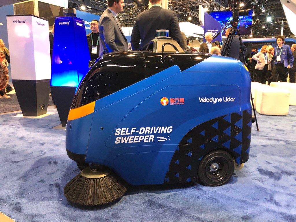 Autonomous vehicles are being planned not only for the transport of passengers and goods, but also for everyday tasks. At the booth of Velodyne, the San José-based manufacturer of LiDARs, a concept of an autonomous road sweeper for sidewalks was presented.