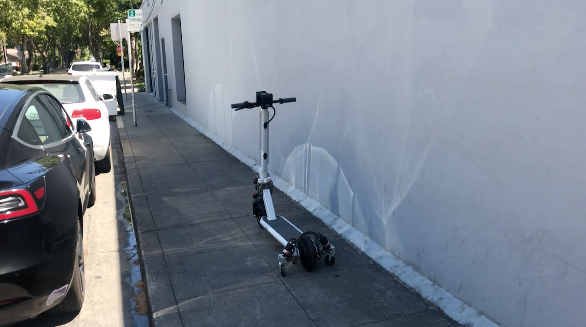 About two-and-a-half years ago, Uber revealed that it’s been working on self-driving e-bikes and e-scooters, and we have seen demos by others. Now reddit-user PablitoG has published a video on reddit with an autonomous electric scooter moving through a side alley in Mountain View. We can see small support wheels to keep the scooter upright, and it’s making its way on the narrow walkway. There also seems to be a box with sensors, possibly a camera(?), installed right above the front wheel. It still seems to be a pretty raw prototype, exposing the electronic insides in the box. It’s also not clear, if it’s “just” remote controlled, or moves autonomously.