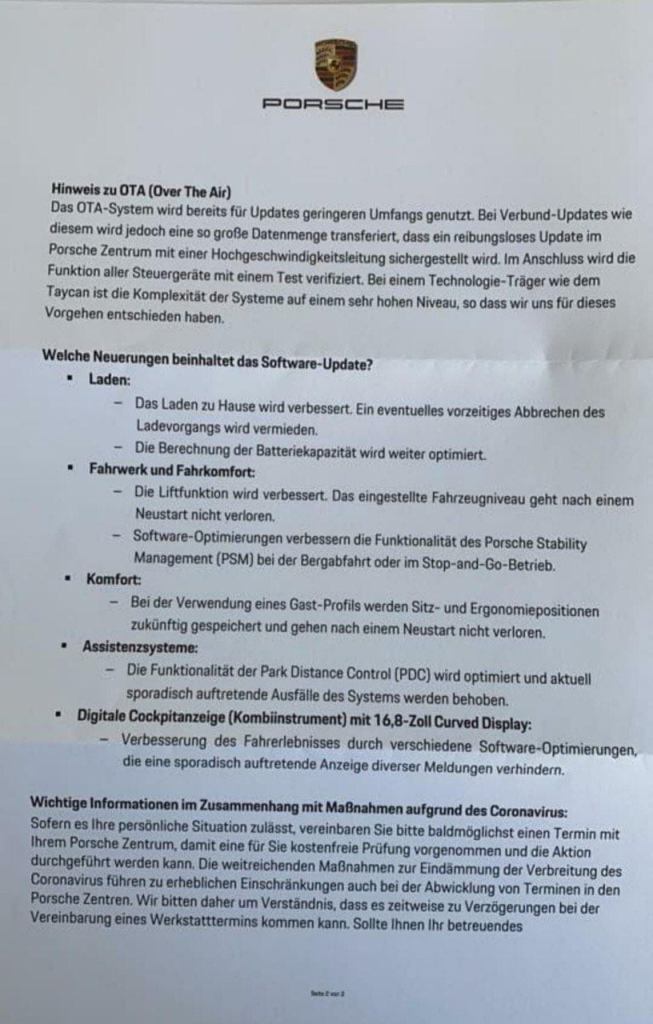 Here the original letter (in German) as sent to the Taycan owners (thanks to Nicolas Boehmer)