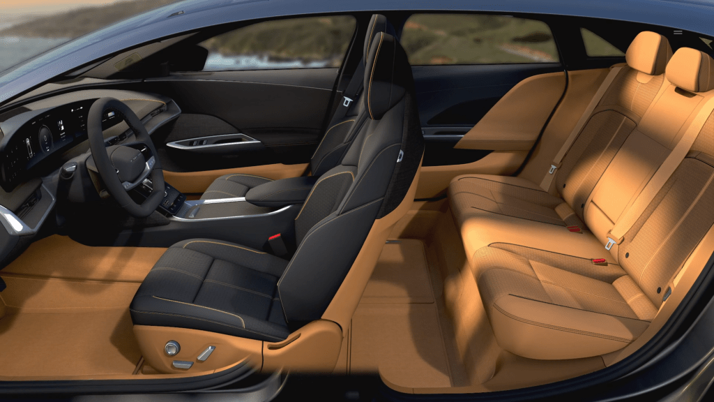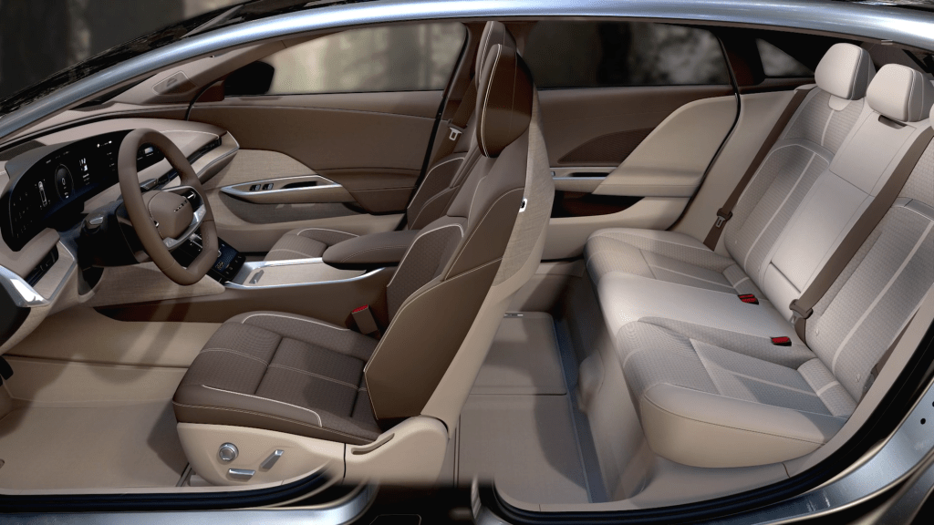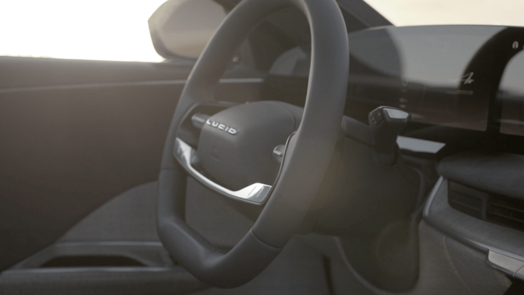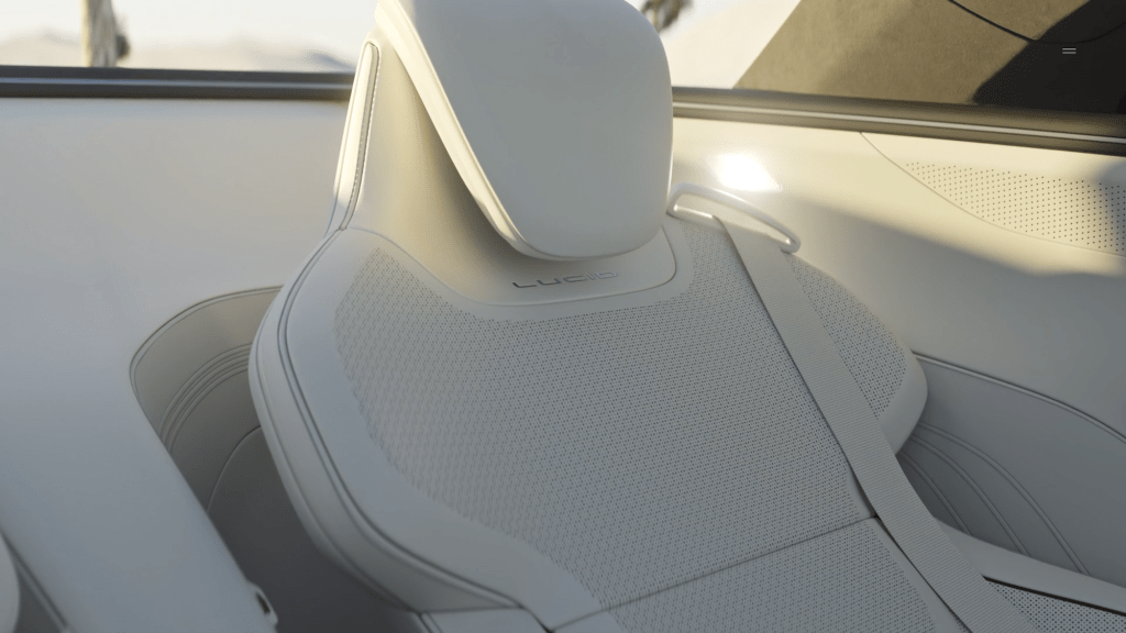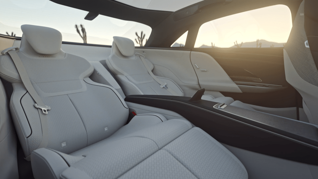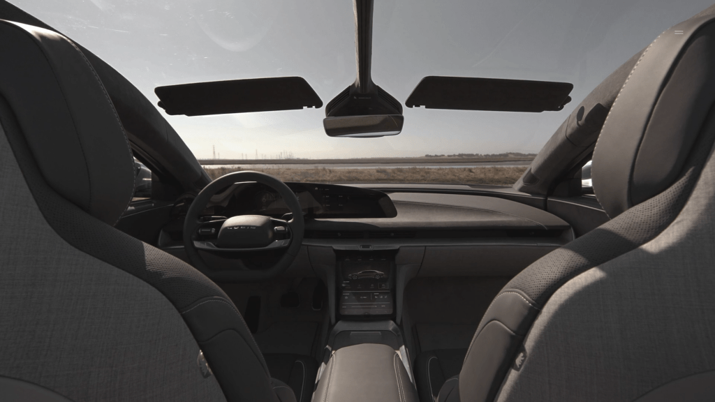 Alls Californian company Lucid uses colors and light from the state. Different places like Santa Monica, Santa Cruz, Tahoe and Mojave Desert and their colors and light at certain times of the day serve as inspiration for the interior.