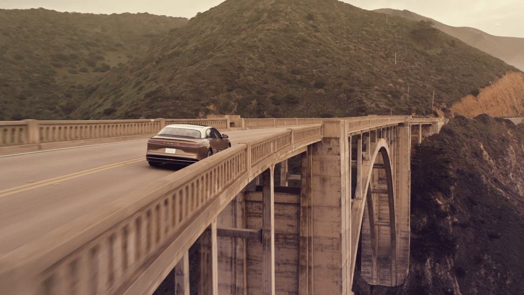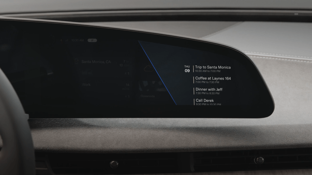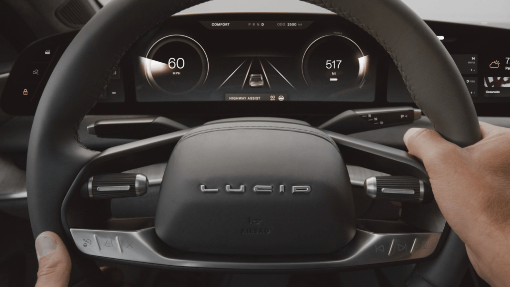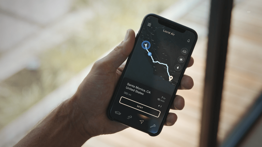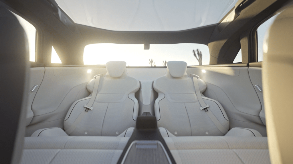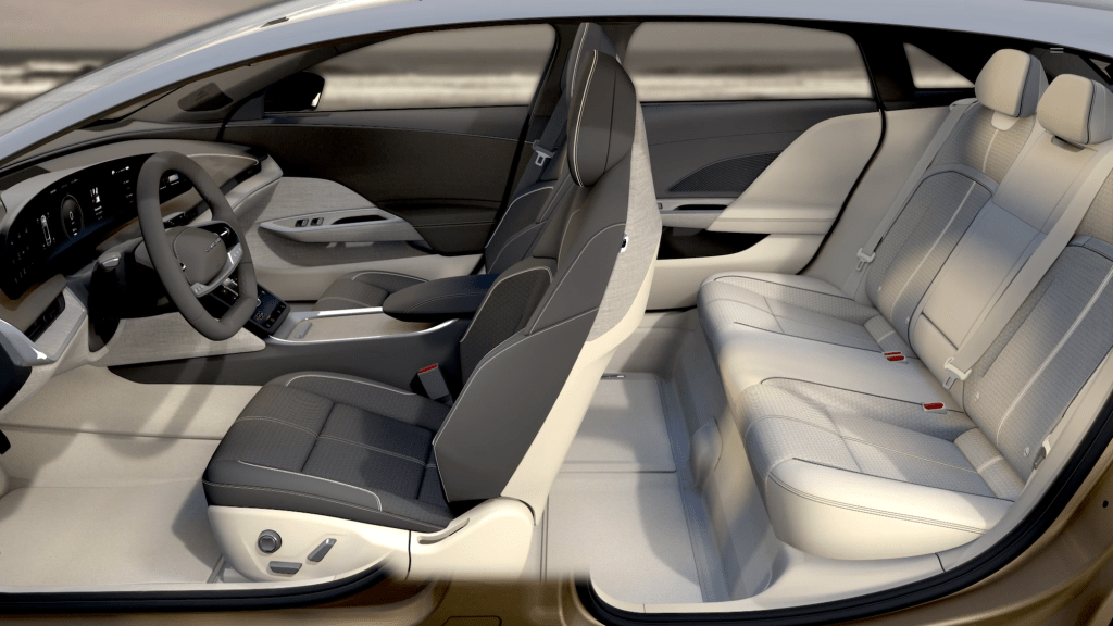 Alls Californian company Lucid uses colors and light from the state. Different places like Santa Monica, Santa Cruz, Tahoe and Mojave Desert and their colors and light at certain times of the day serve as inspiration for the interior.