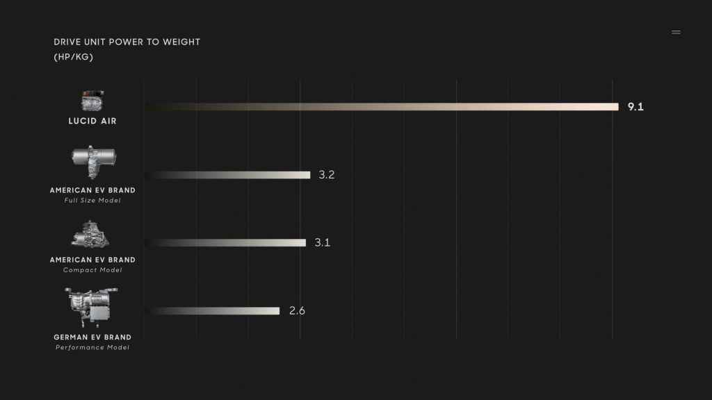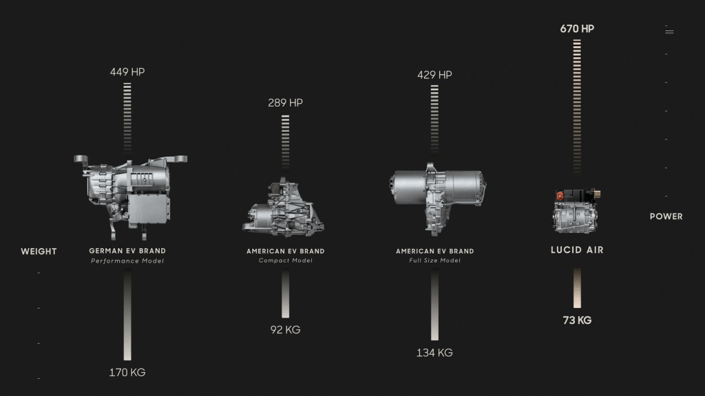 The vehicle’s performance data is impressive at over 1,000 horsepower, with an estimated official EPA range of 827 kilometers (517 miles). Lucid also claims 15 percent more efficiency than its nearest competitor, both in terms of electric motor and battery power. The electric motor is extremely compact and, with a weight of 73 kilograms and 760 horsepower, is almost three times more efficient than the next competitor. The compactness of the electric motor allows Lucid to install up to three of them in the sedan, with corresponding power.