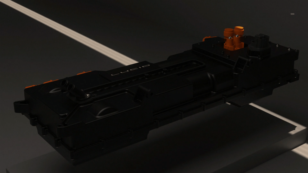 The big surprise are the batteries. It was known that Lucids batteries are already used in Formula E in all 24 cars and can cover the entire race distance with just one charge. But so far there has not been a single battery failure in several racing seasons. However, the battery cells are housed in modules that can be plugged together like Lego bricks and the entire battery architecture is designed for bi-directional charging. One Lucid Air can use it to charge another Lucid Air or supply its own house with electricity in the event of a power failure. The 924 Volt batteries, the Battery Monitoring System (BMS), the compact thermal management make the batteries a powerful component of the vehicle. This is all made possible by a central control unit, the so-called ‘wonder box’.