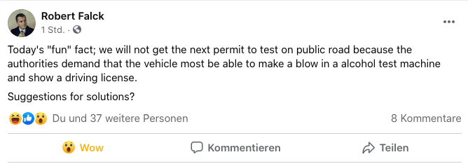 The CEO of the Swedish start-up Einride, Robert Falck, who started with his team to develop and build self-propelled trucks and has just completed a financing round of 8.5 million euros (10 million dollars), posted on social media with a request for a solution to a requirement from the Swedish Transport Authority Transportstyrelsen. Einride had applied for a test permit on public roads for his cabless truck and received a refusal from the authority.