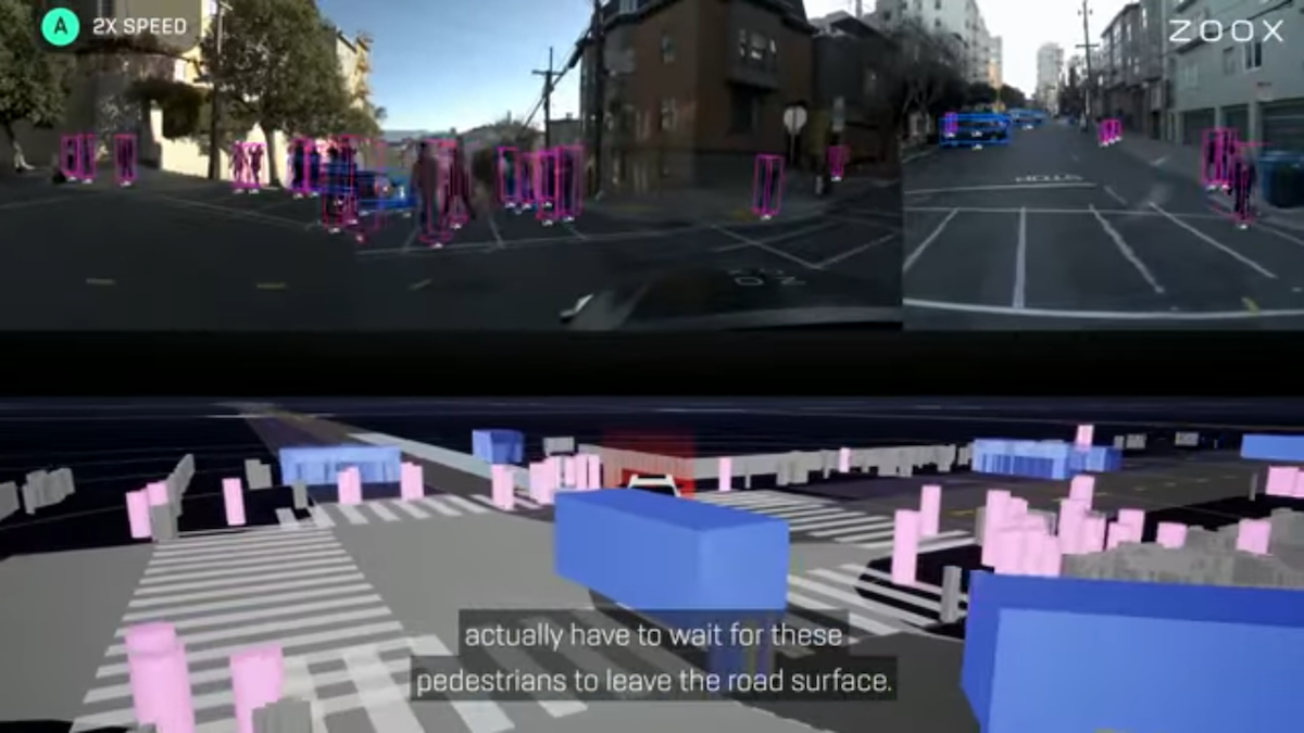 Here is a video that shows a compressed one-hour drive through San Francisco. The commentators in this video are James Philbin, Zoox Sr. Director of Perception & Prediction, and Sarah Tariq, Director of Computer Vision, who point out and discuss several challenges during the ride.