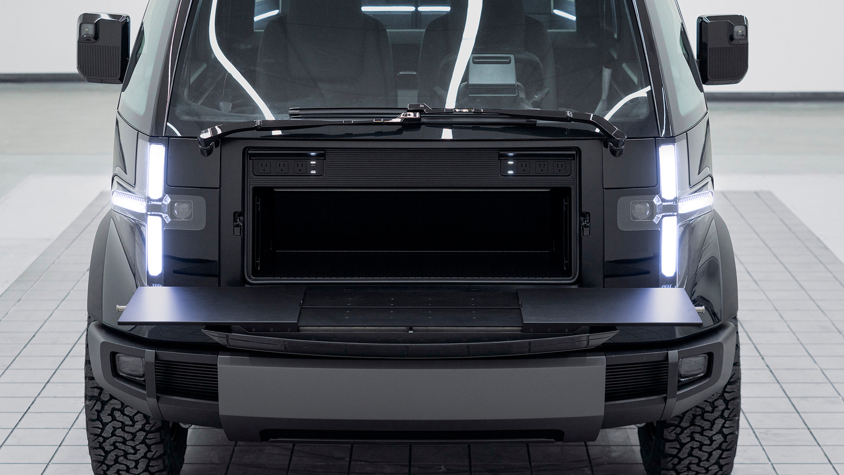 The performance data: more than 500 hp, 800 kilograms (1,800 pounds) load weight, over 320 kilometers (200 miles) range, between 1.8 and 2.4 meters (6-8 feet) load area and with all-wheel or rear axle drive.