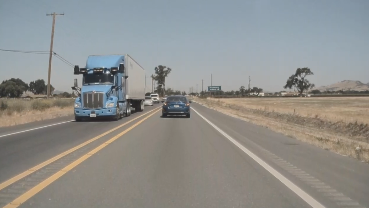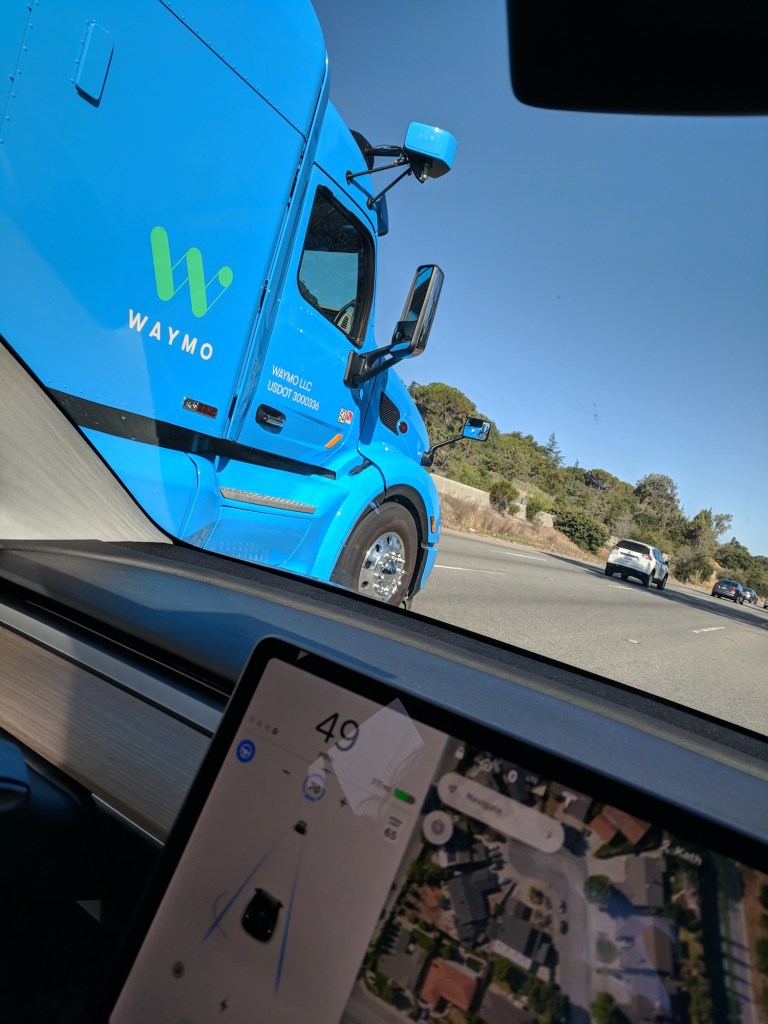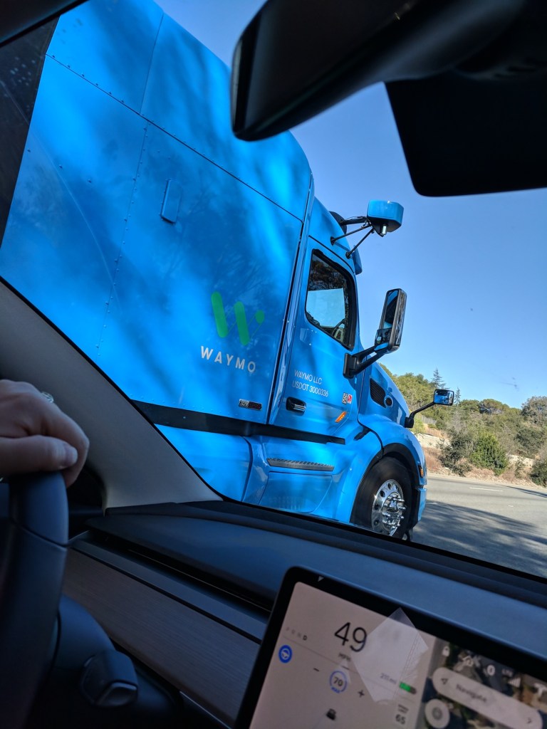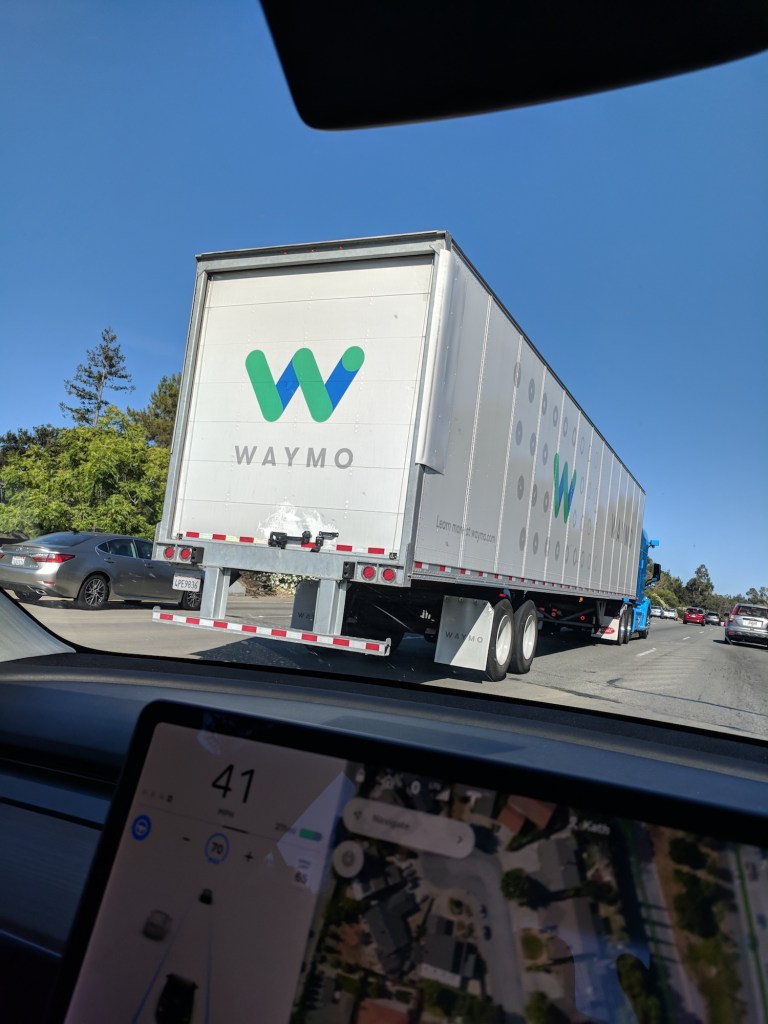 This self-driving Waymo truck was spotted in California State Route 152 Westbound close to Gilroy on June 2nd 2021, around 11am PDT.