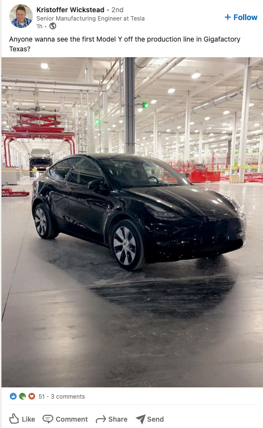 The embarrassment is perfect, yet it was looming. A Tesla engineer at the brand-new Tesla factory in Austin, Texas, Kristoffer Wickstead, posted a photo on his LinkedIn profile of the first Model Y produced there. It’s embarrassing because construction of the Tesla factory in Berlin-Grünheide – Gigafactory 4 – began in March 2020, while that in Austin – Gigafactory 5 – began four months later, at the end of July 2020.