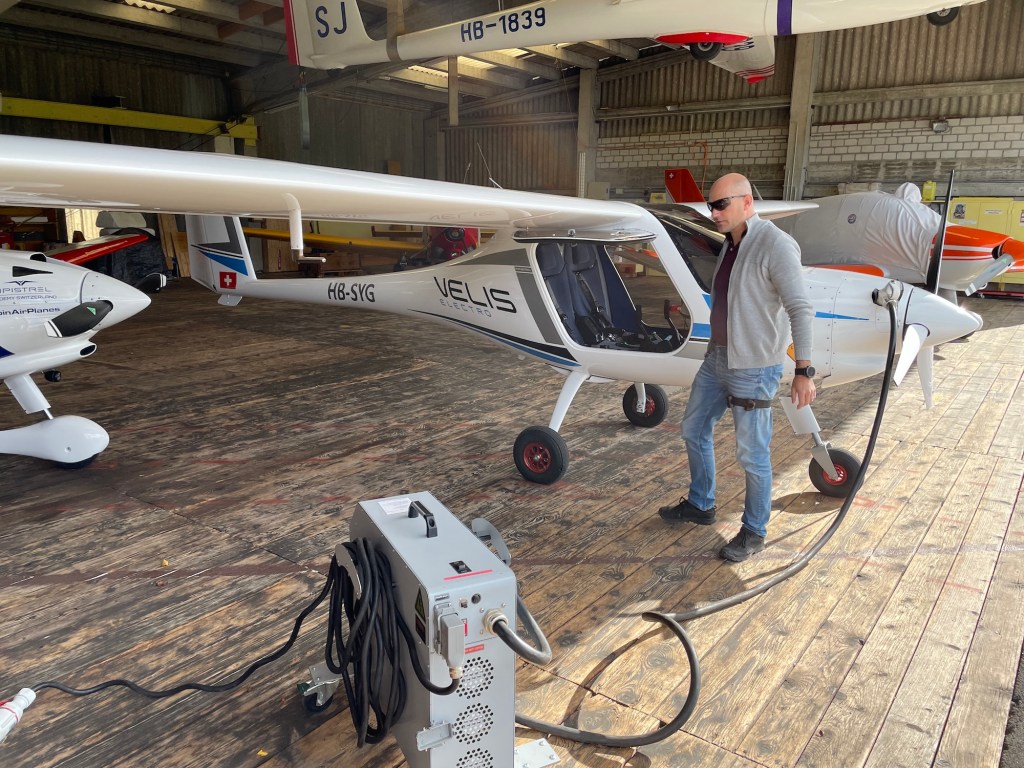 The space in the aircraft itself is cramped, but you get to experience the flying much more directly. You almost feel like the aviation pioneers who sat in the open with goggles and leather helmets. The instrument panel is also tidier and clearer than in aircraft with combustion engines. According to Morell, electric aviation is at the level where electric cars were 10 years ago. The aircraft industry is also benefiting from the increased investment in battery development for electric vehicles. There are still no installed charging stations at the Schänis airfield, as at the other airports, but the transportable charging stations already allow aircraft to be charged. On average, the charging process takes about one hour.