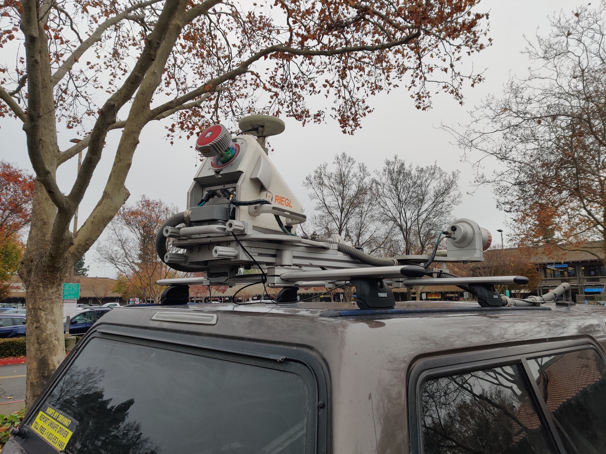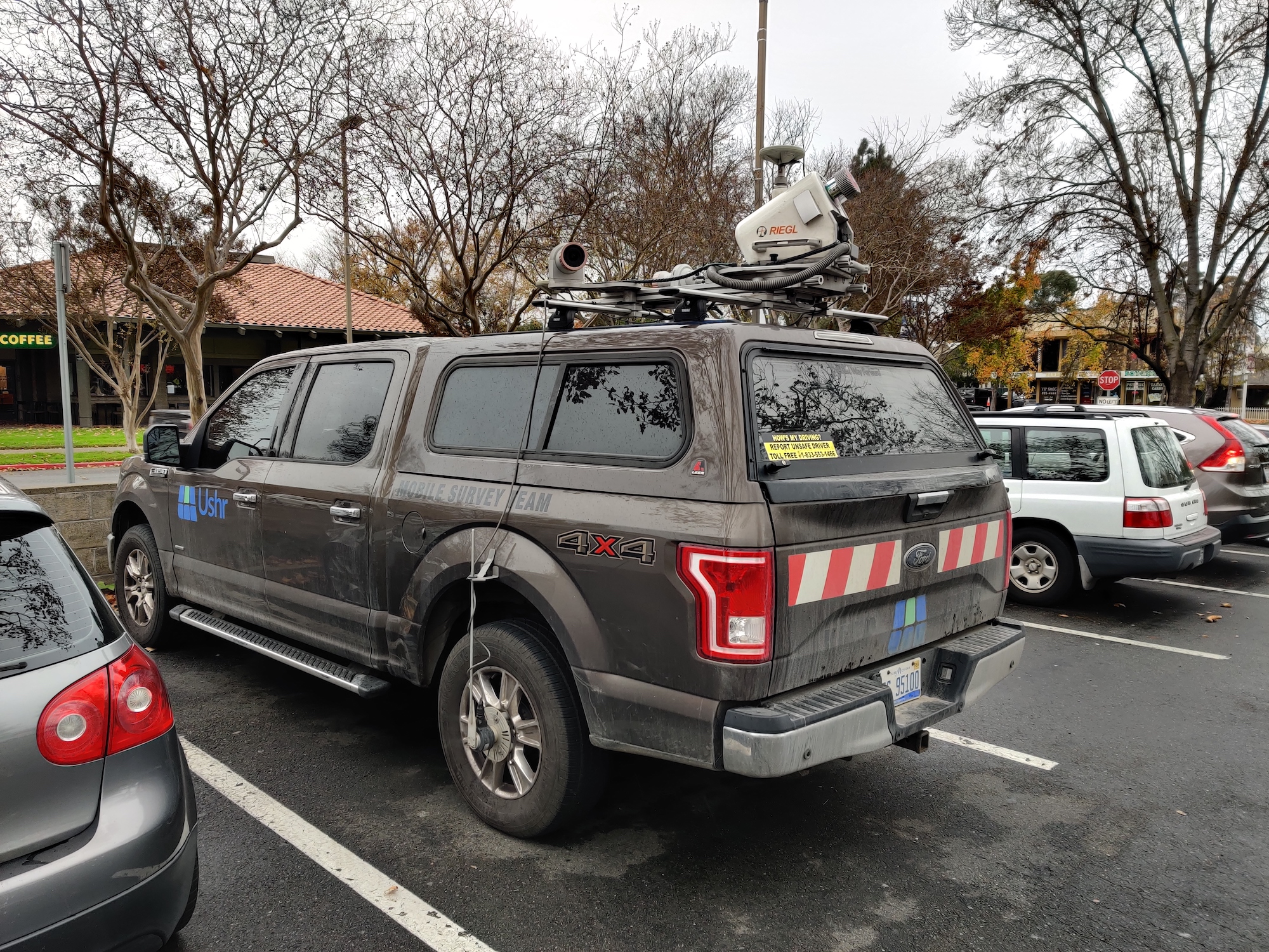 One of the measurement vehicles, a Ford with Michigan license plates, has now been spotted in California. Our reader Dennis spotted the vehicle on December 12, 2021 in Pleasant Hill, located about 20 miles northeast of San Francisco. Note the sensor mounts on top of the car, which included a LiDAR measurement system from Riegl.