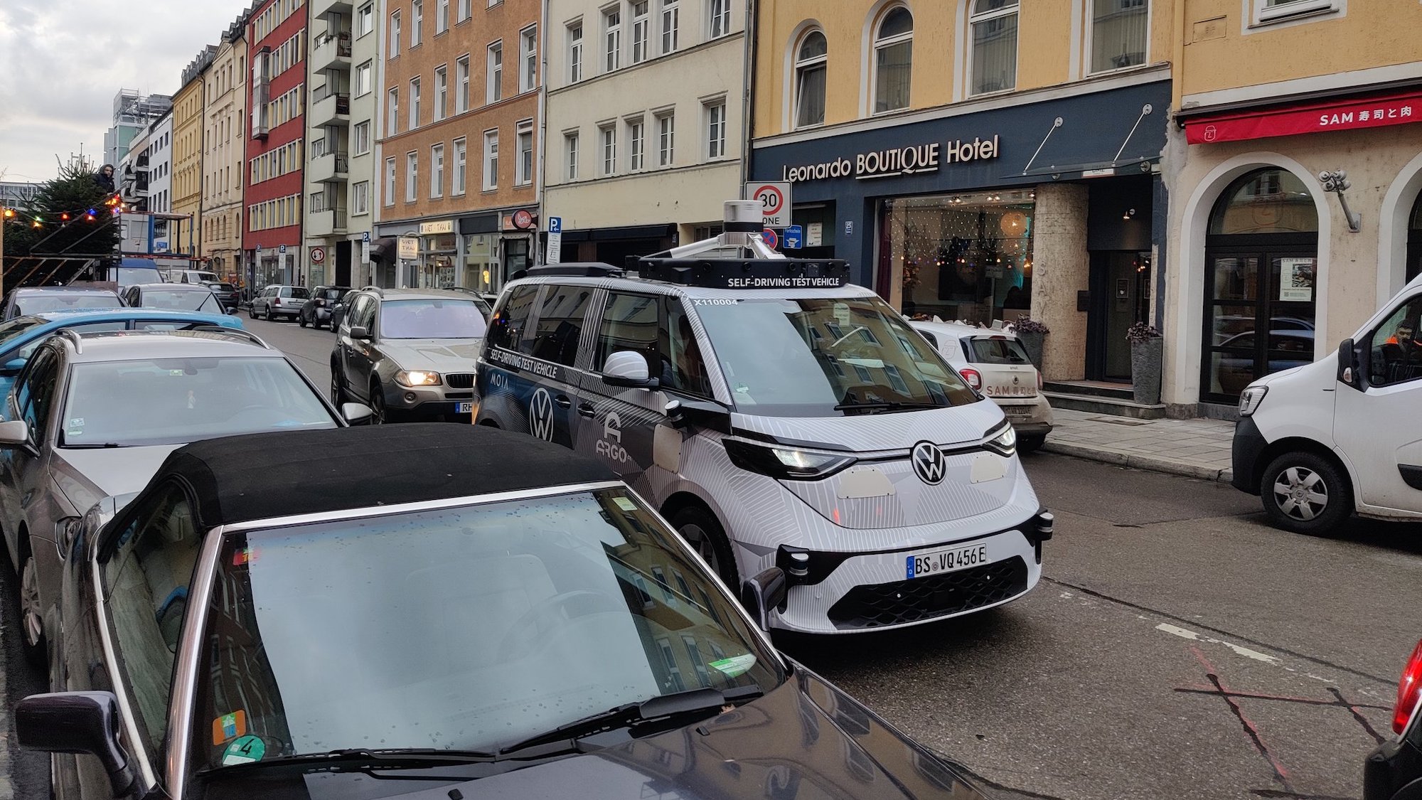 Slowly but surely, German companies are also entering the race for autonomous vehicles. Robin Engelhardt on Twitter posted a photo yesterday of an ID.Buzz with sensor setups that was on the road in Munich. The ID.Buzz is the battery-electric reimagining of the VW Bus, in a lineup with the ID.3 and ID.4.