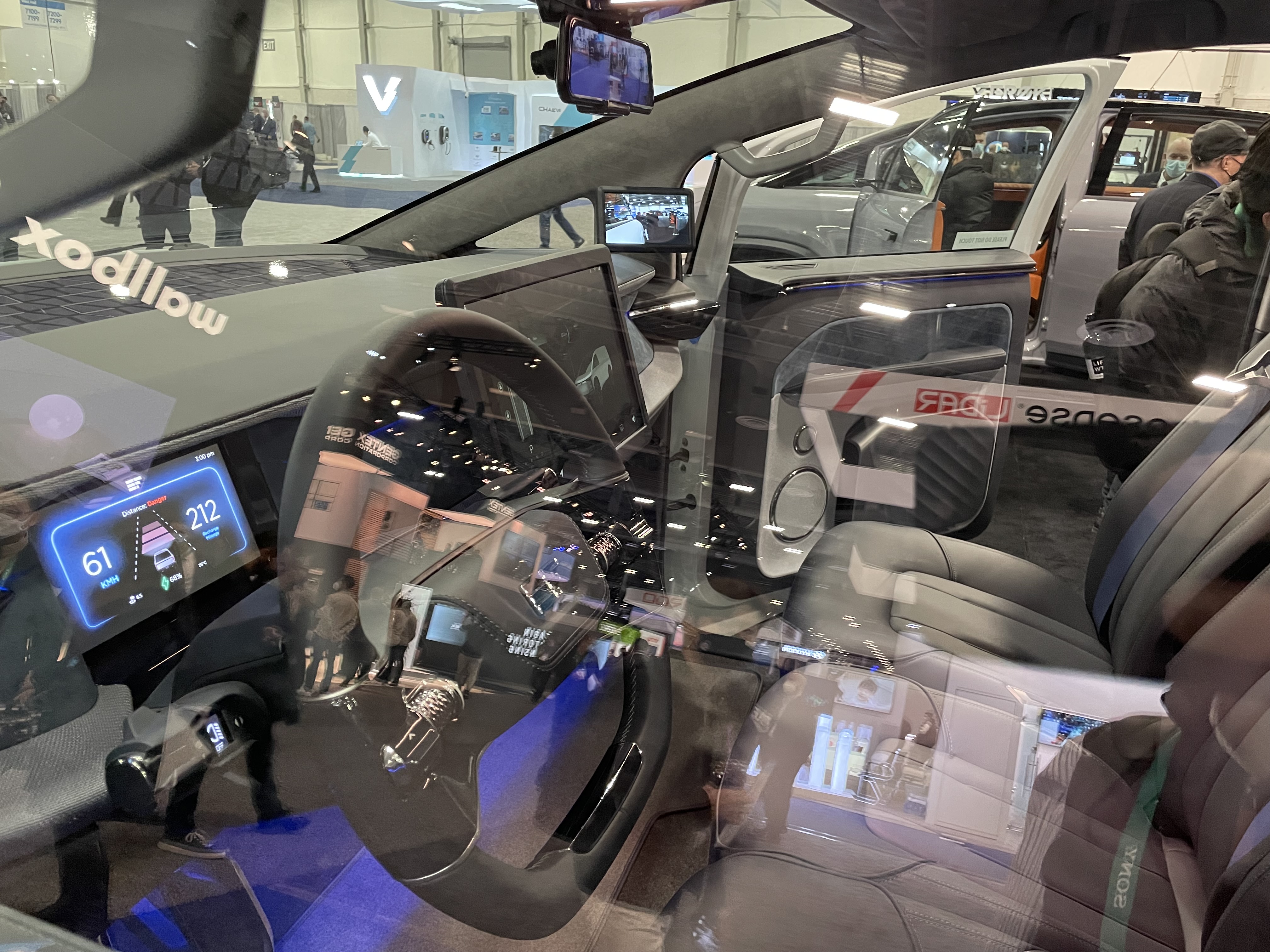 The pickup truck has a retractable hard folding roof over the truck bed with solar panels named after the Texas Armadillo. The camera rearview mirrors and transparent display for the driver are also noteworthy.