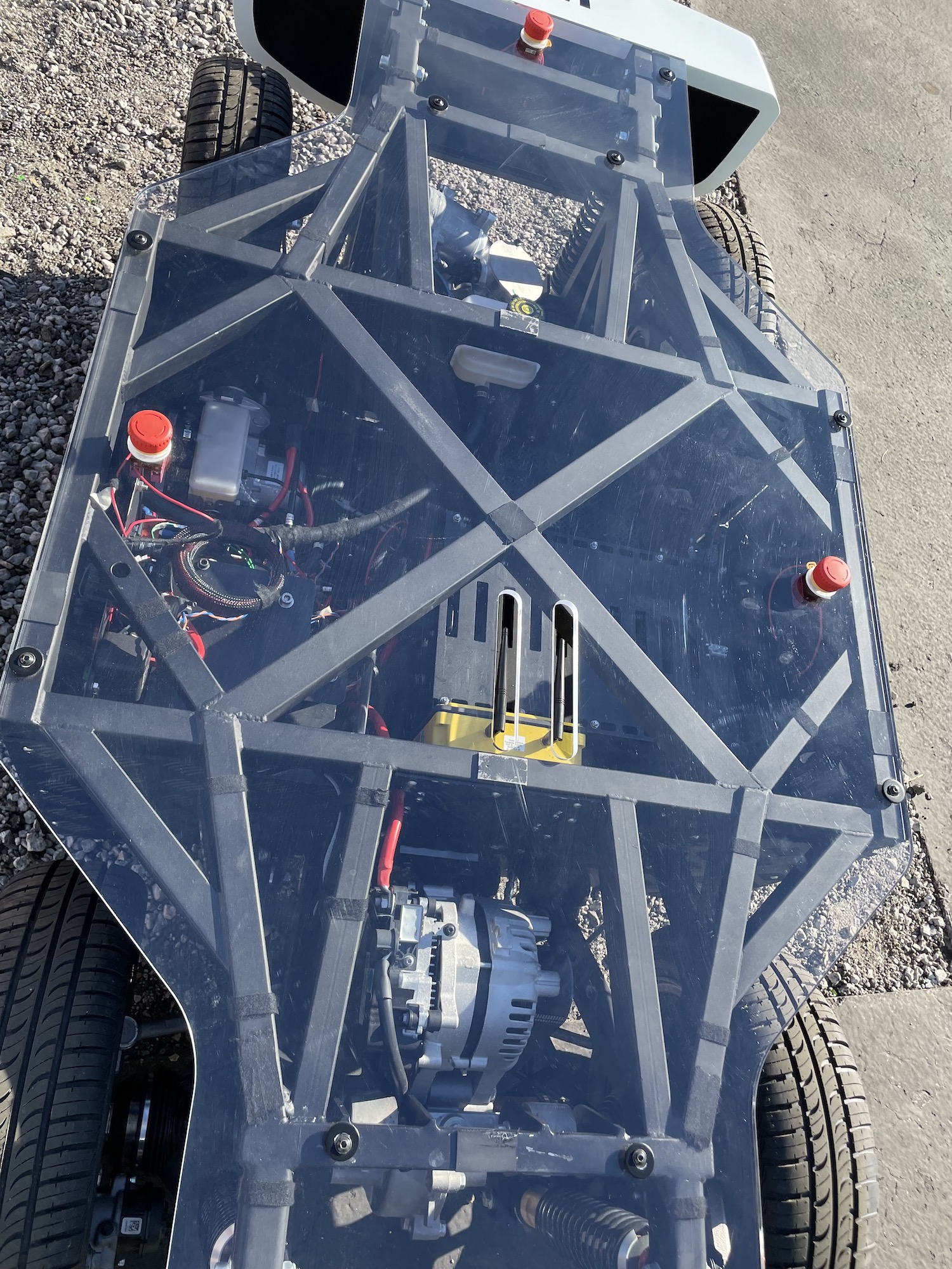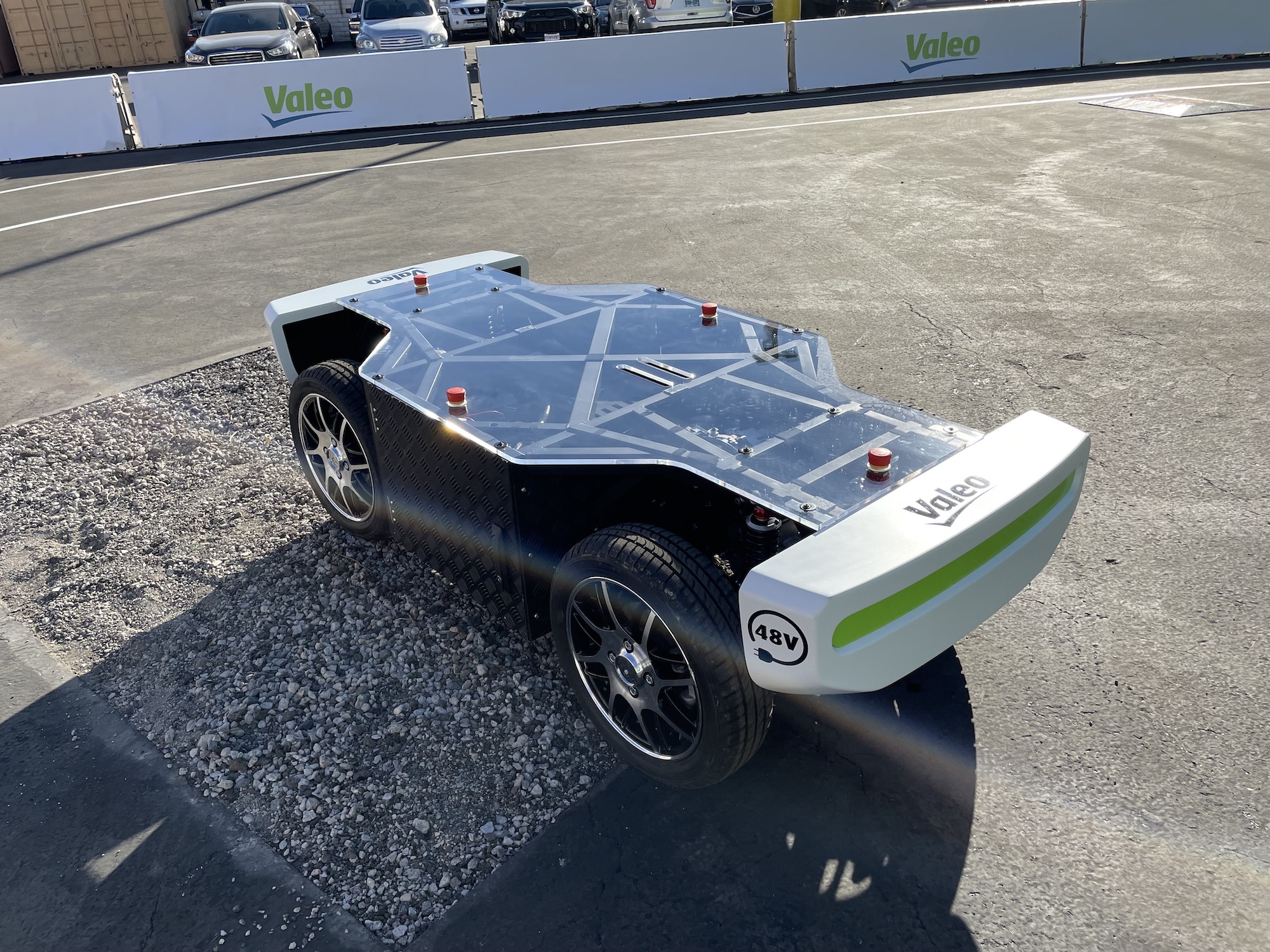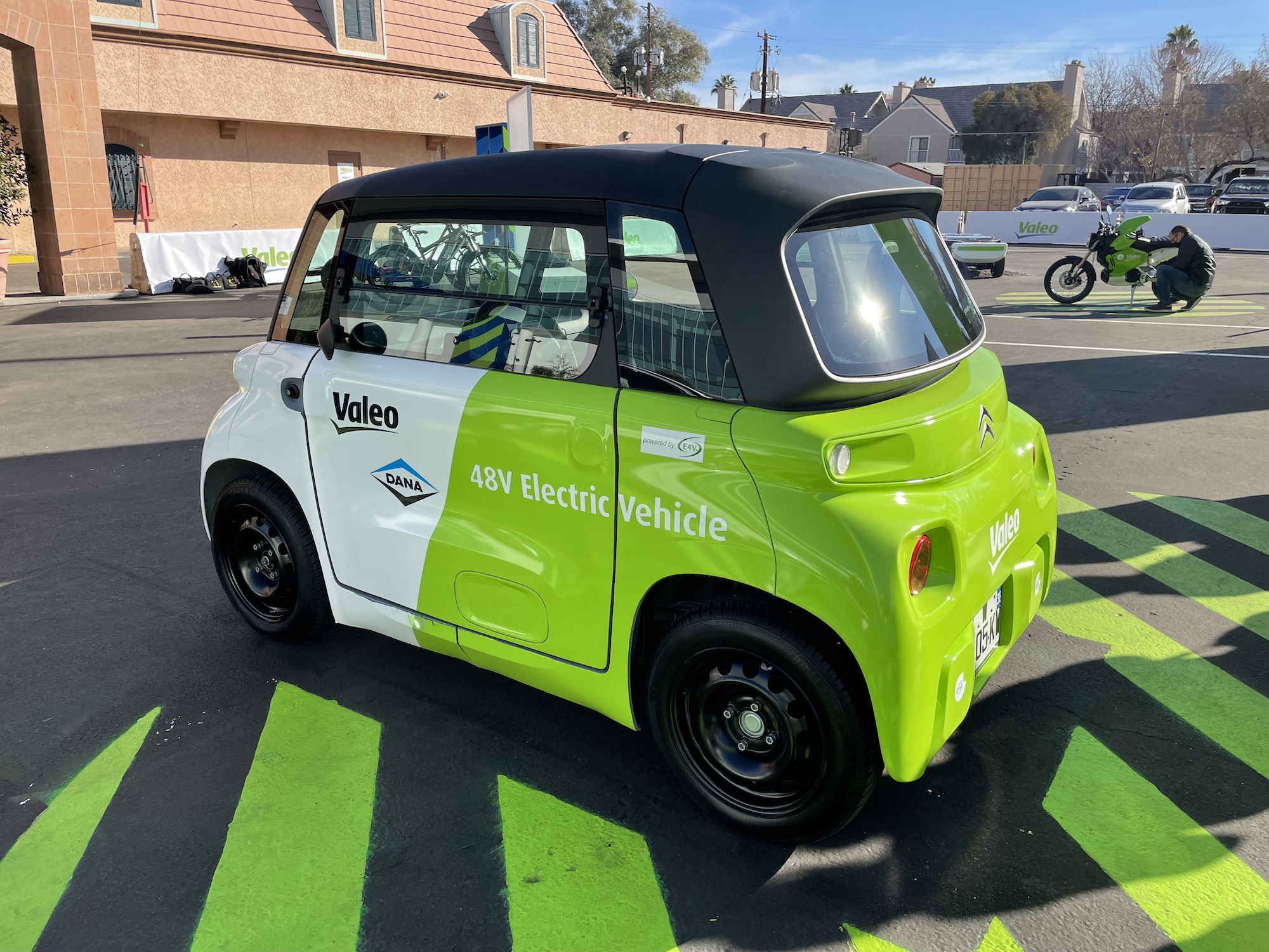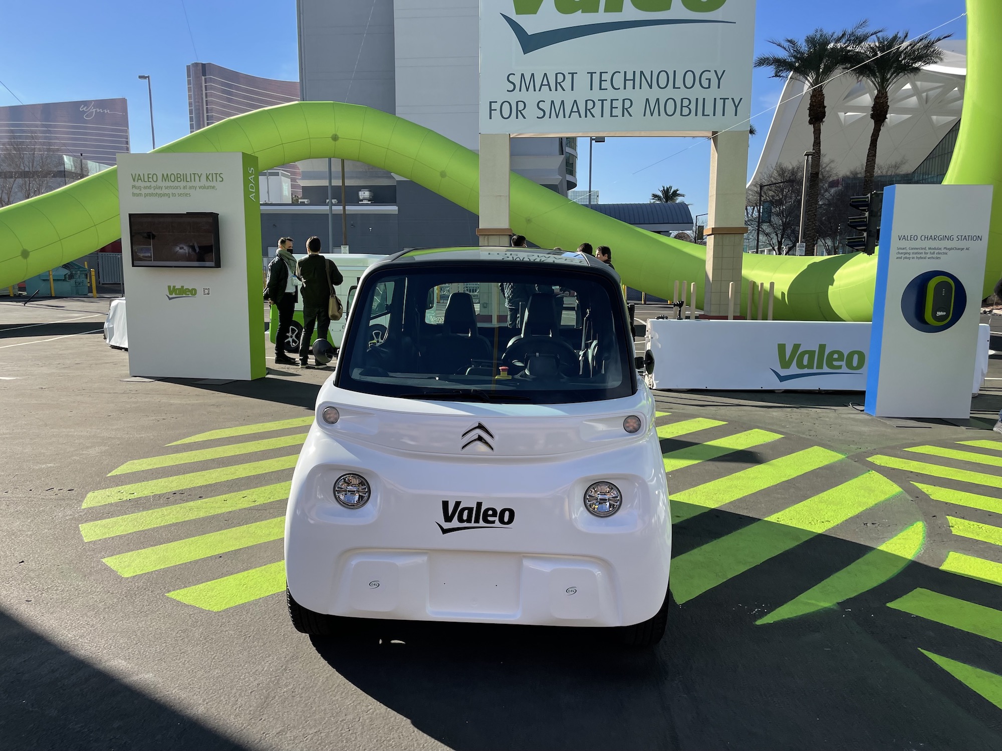 At Valeo, I then learned that the engine you see in the skateboard platform is the same one installed in the Ami. Small, compact, sufficient for city trips with two people and no suitcase on board.