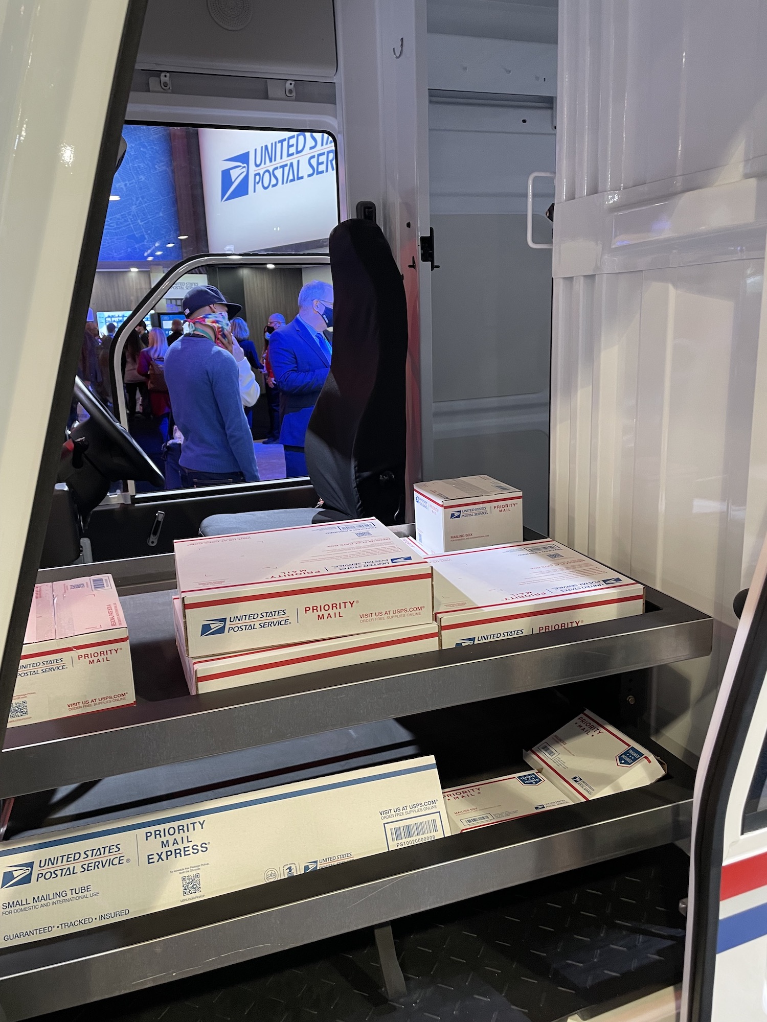 And: it’s surprisingly big! Anyone familiar with the typical mail delivery vehicles in the U.S., which are quite compact and I can barely see over them, will be amazed at how tall and roomy this vehicle is. Aside from the obvious: anyone seeing the vehicle for the first time will have an opinion on its appearance. Ugly, duck head like, cute, etc. it looks.