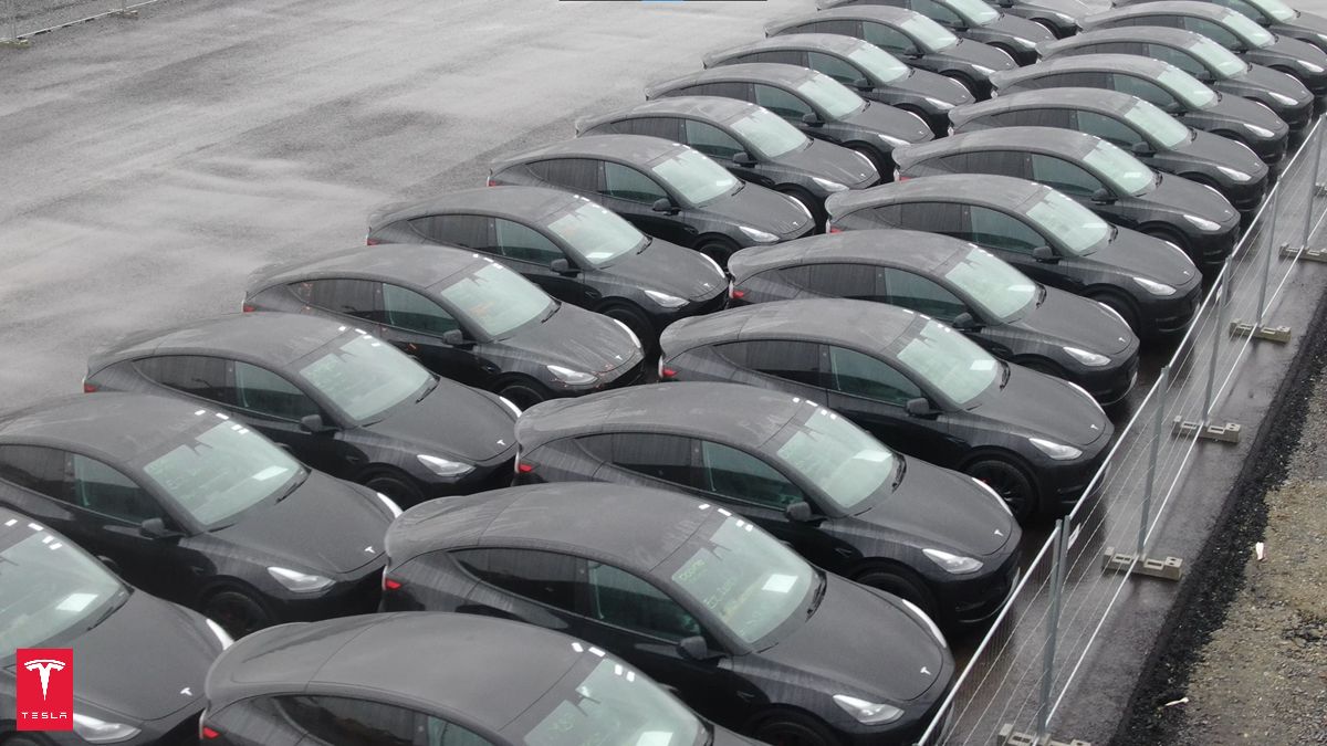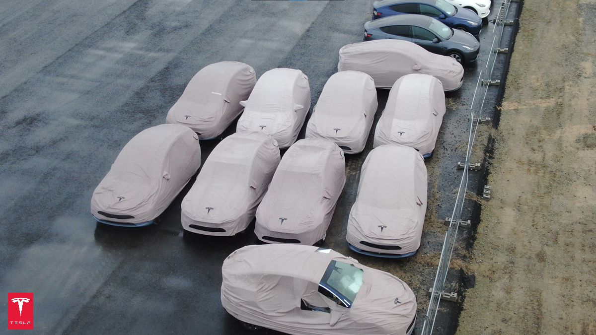 A new drone flyover by Tobias Lindh, who regularly captures video of Gigafactory construction, showed new pre-production Model Y vehicles in a parking lot, this time all painted black, and some covered with a tarp.