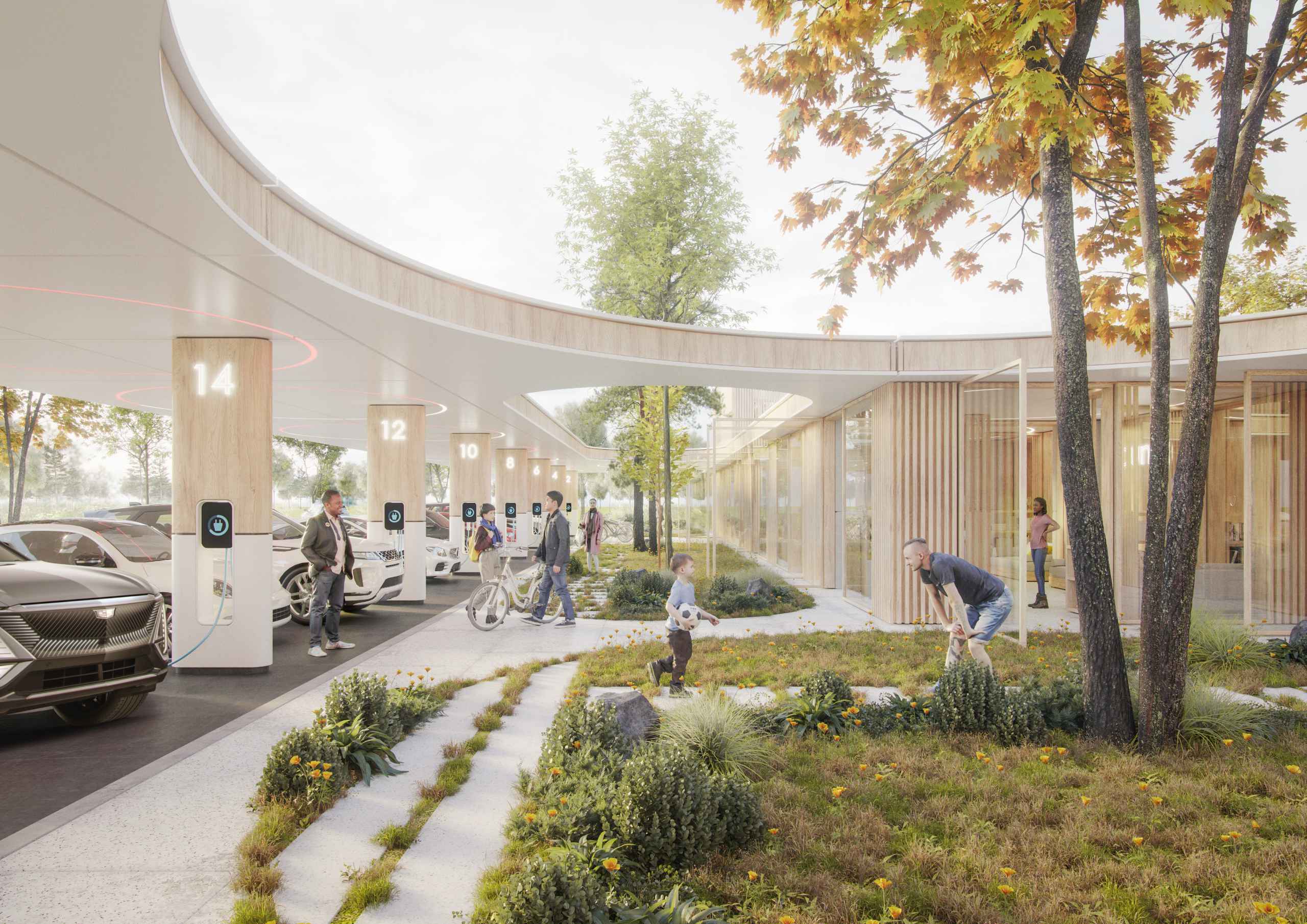 Canadian service station operator Parkland, which operates 3,000 service stations in 25 countries, was one of the main sponsors for a design competition on what charging stations of the future might look like. And there were some very interesting submissions, ranging from fitness rooms and parks to cafés and children’s playgrounds. All using natural and dignified materials.