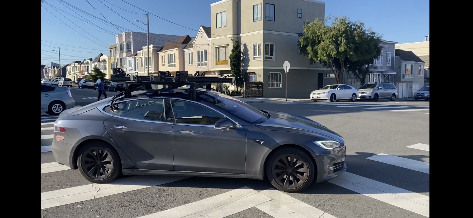 This Tesla with manufacturer plates was seen by Twitter-User Patrick McGee driving in San Francisco on Saturday, February 19th, 2022. We can see the LiDAR and camera racks. The vehicle seems to be used for ground truth drives.