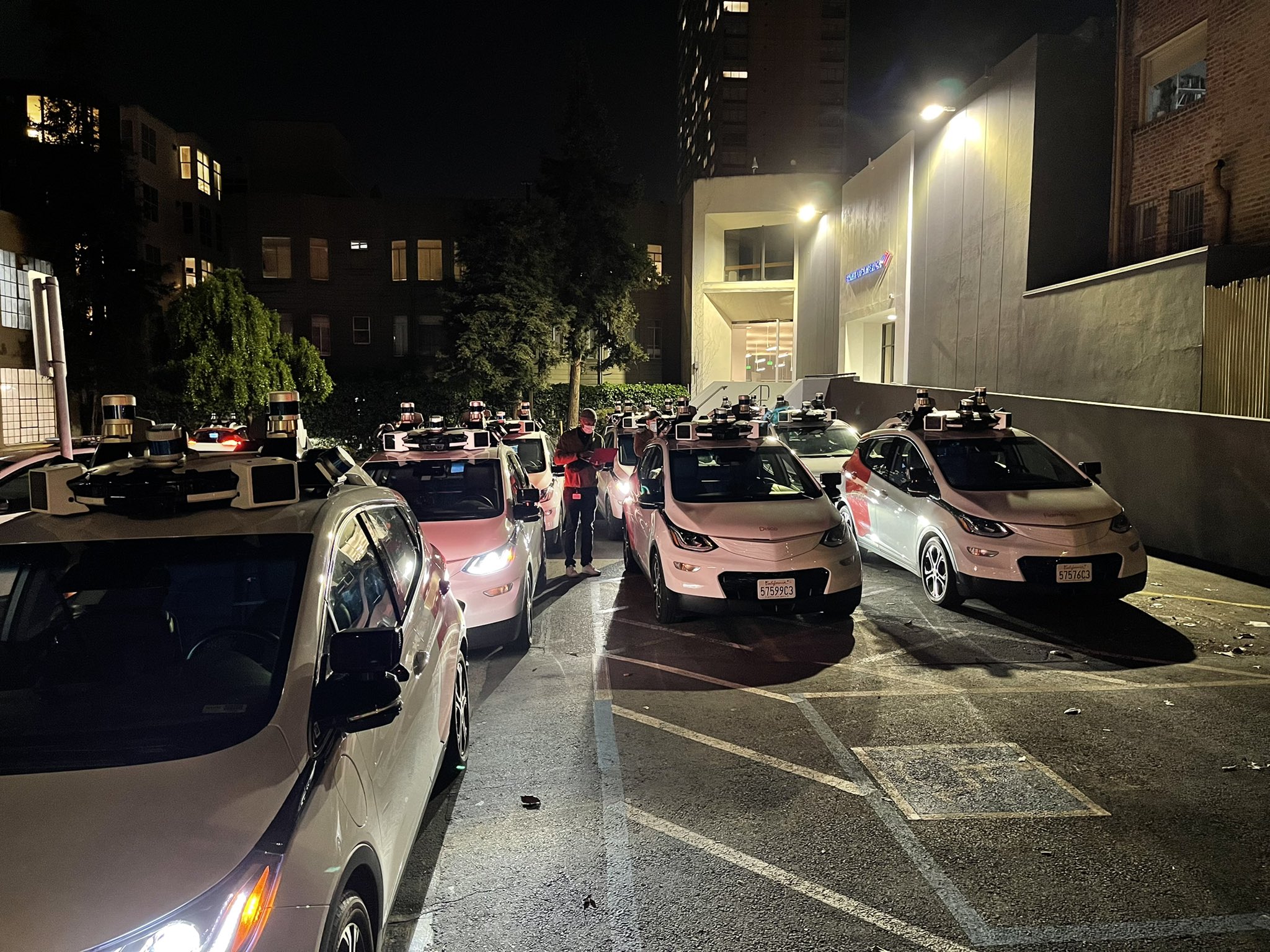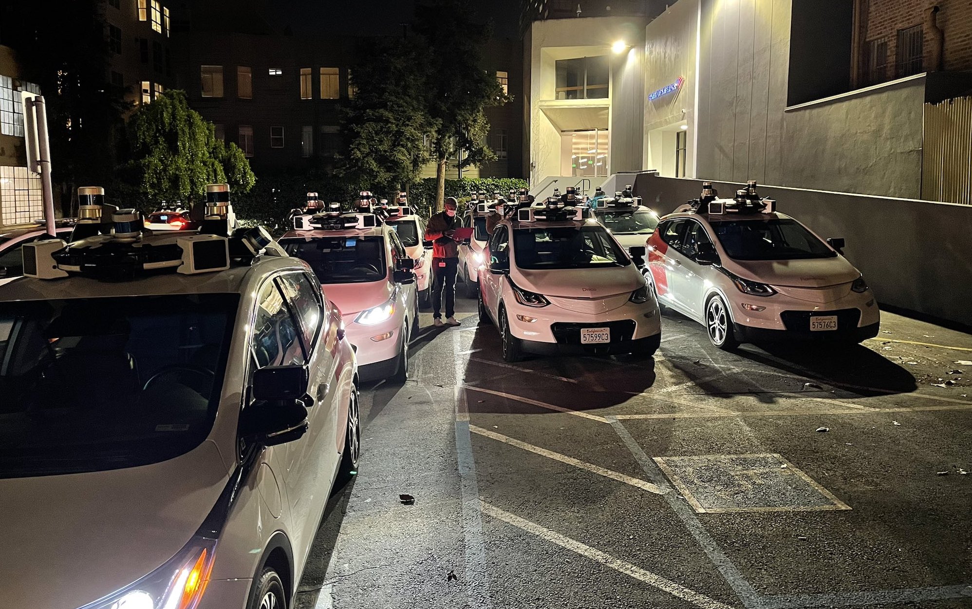 With the company receiving approval for driverless driving and commercial deployment of Cruise’s fleet of robot taxis, more and more images and videos are now surfacing showing the empty cars in San Francisco. Some that give an idea of the scale of the operation (more than 100 vehicles are part of the fleet), and some that show what conditions need to be met for the vehicles to run safely. And this includes calibrating the sensors, as we see in the picture from the garage. The images come from Twitter user @21five_public.
