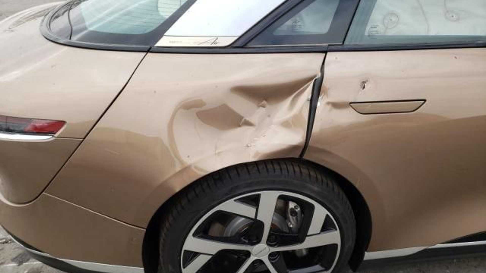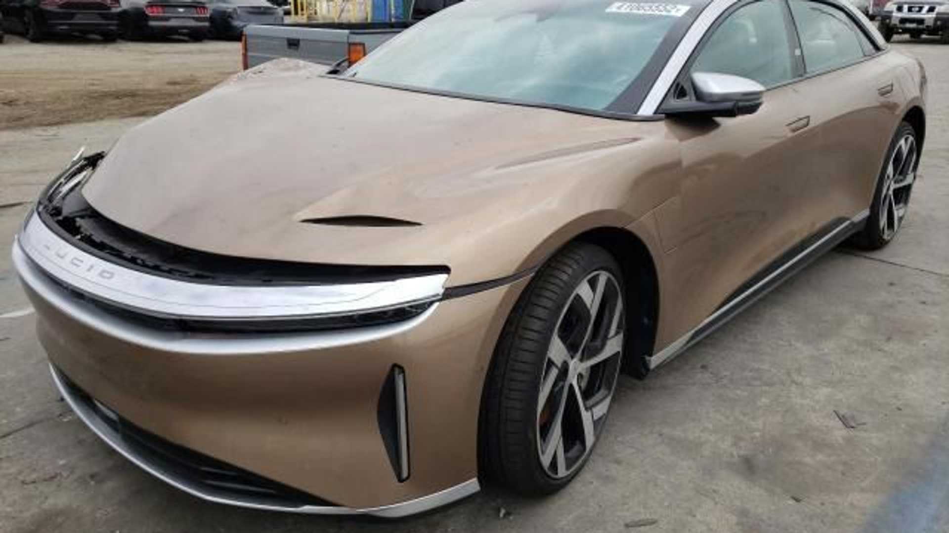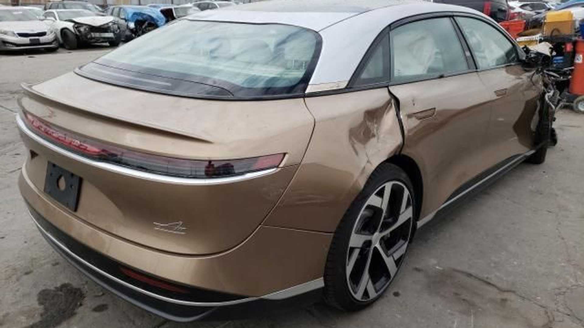 Just 500 units of the Lucid Air Dream Edition at $170,000 have been delivered so far, and now the first one has been pretty much wrecked as well. On the website Copart, this wreck was posted, claiming to have been involved in an accident in Los Angeles that damaged the front right tire box and the rear side.