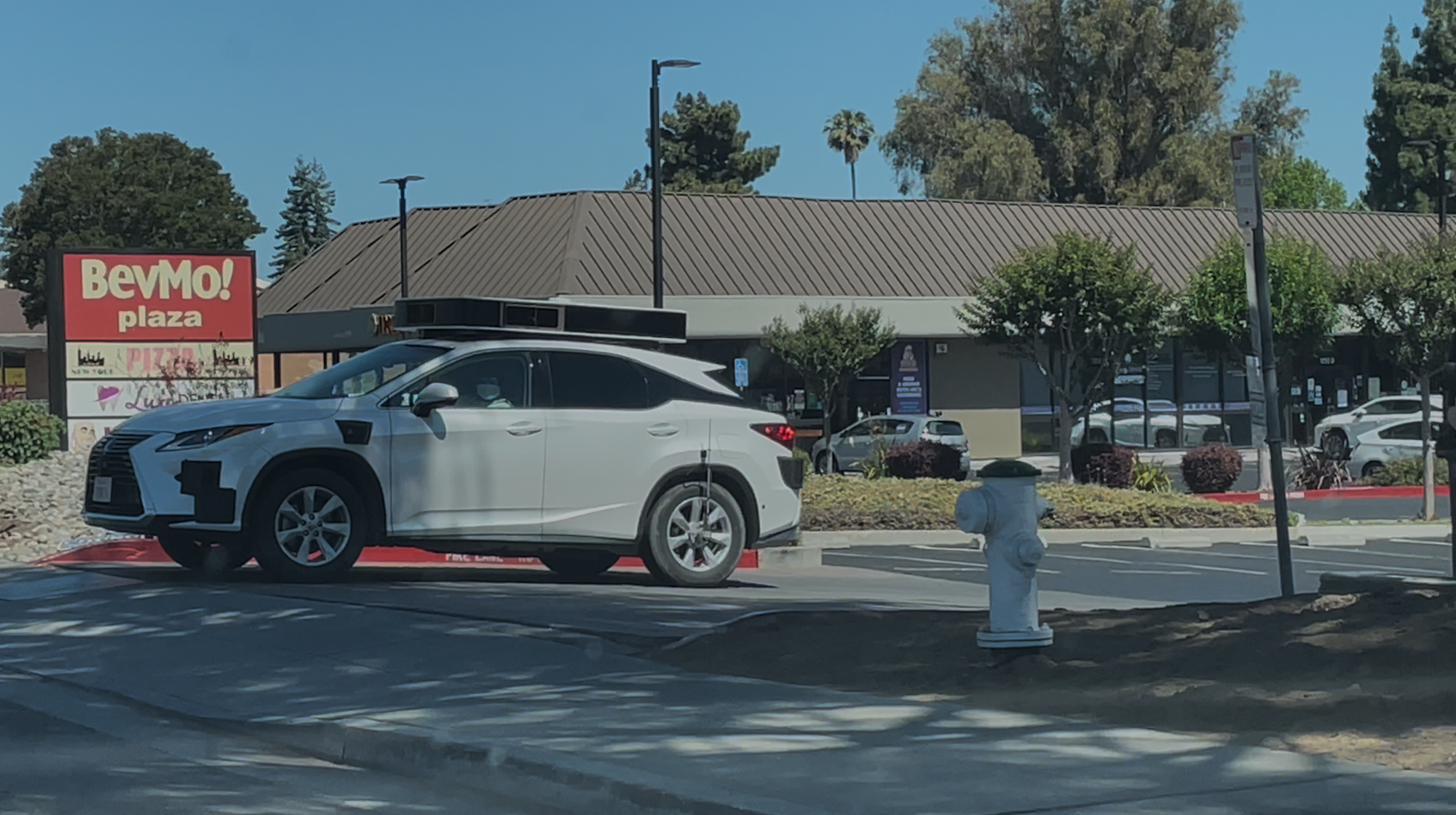 Two autonomous test vehicles from Apple – one in white, the other one in grey – were spotted in a parking lot on El Camino Real northbound on June 13th, 2022 around 11:00am.