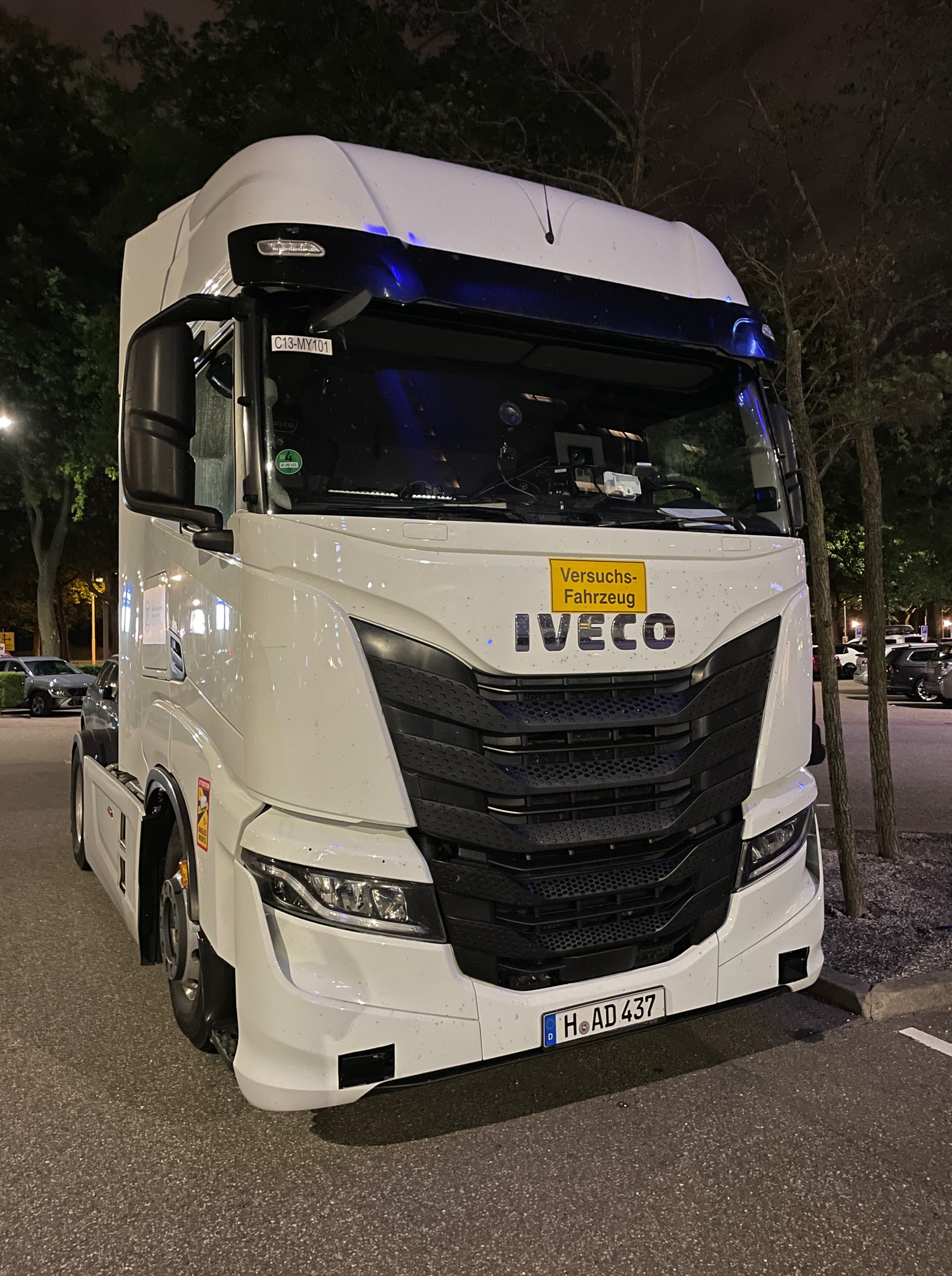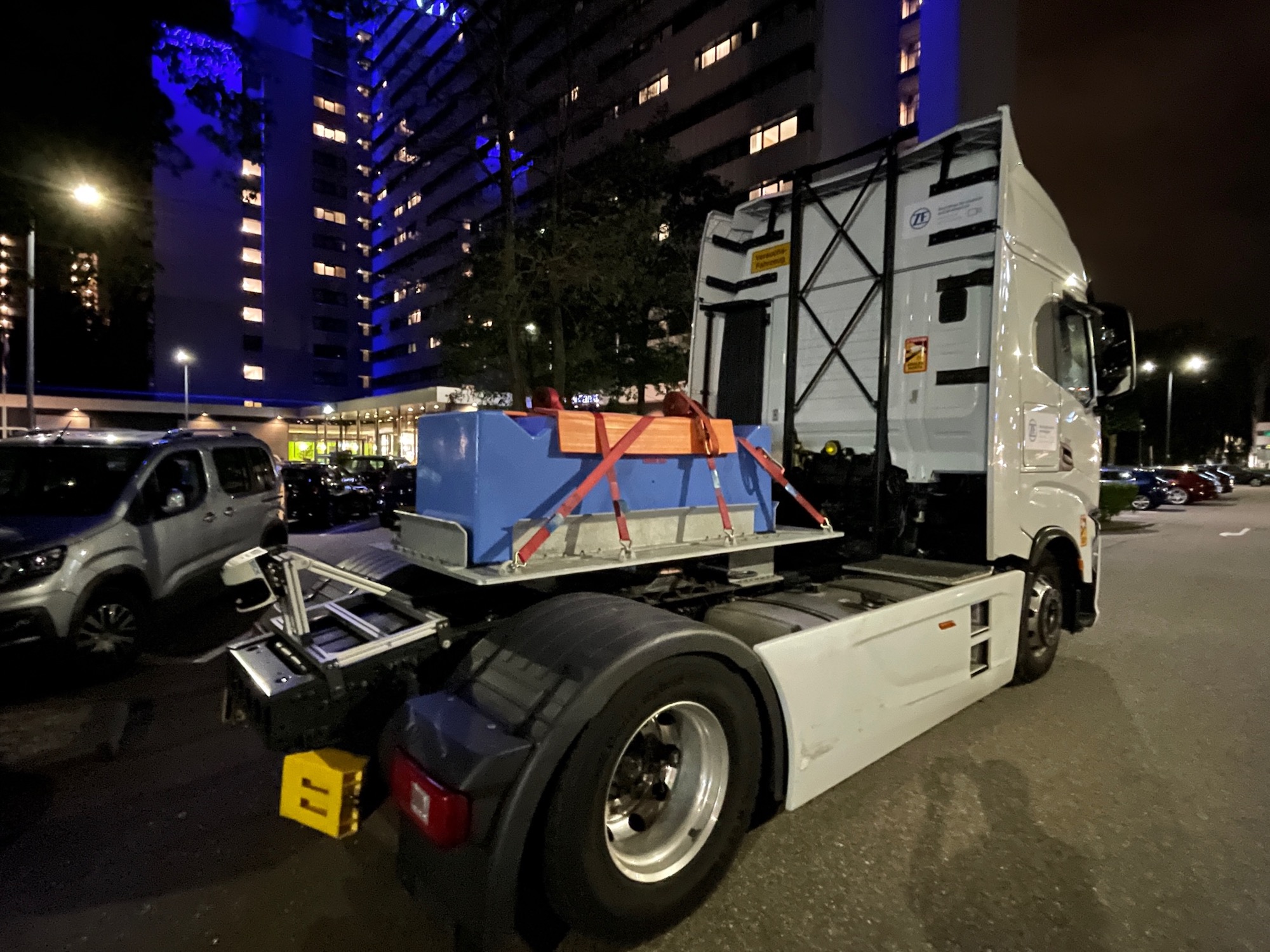 An autonomous test vehicle of a European truck (the tractor) from the company Iveco was spotted by our reader Patrick Ott today in a hotel parking lot in Amsterdam. The vehicle is equipped with several LiDARs, cameras and radar.