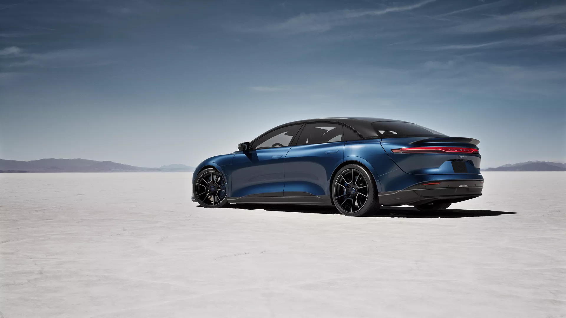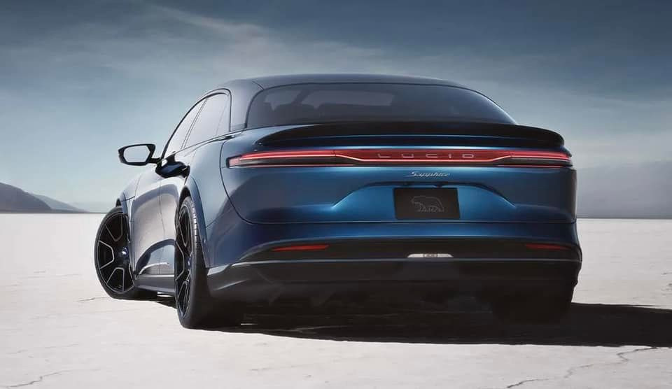 Lucid Motors, maker of one of the most powerful electric luxury sedans, unveiled its new brand of sports luxury sedan this week at the Pebble Beach Concours d’Elegance in Monterey, California: The Lucid Air Sapphire. And the performance specs are impressive: 0 to 100km/h (96 km/h or 0 to 60 mph to be exact) in under 2 seconds, the quarter mile in under 9 seconds, and the car with three engines with an as yet undisclosed horsepower figure, but it should be over 1200. Top speed: over 200mph (320km/h).
