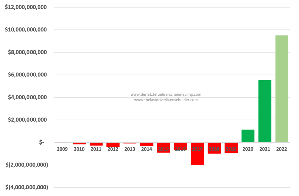 It also doesn’t help the founders’ attitude that they see external investors purely as someone who wants to sell the company as quickly as possible and make a profit from it. As you can see with Tesla, there were losses almost every quarter for 10 years exclusively, which eventually added up to 6.67 billion until it became a highly profitable company with unbeatable profit margins. An exaggerated fear of loss of control by the founders over their baby probably plays a major role there.