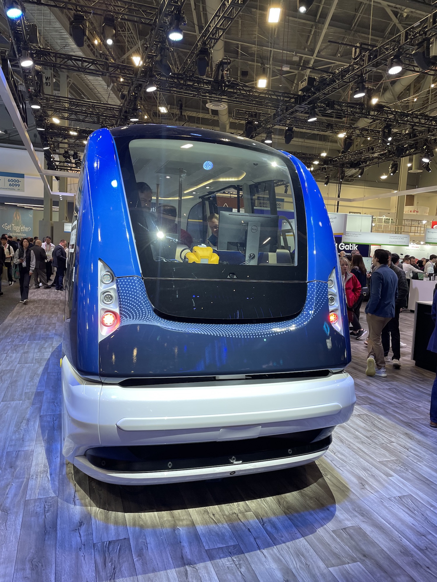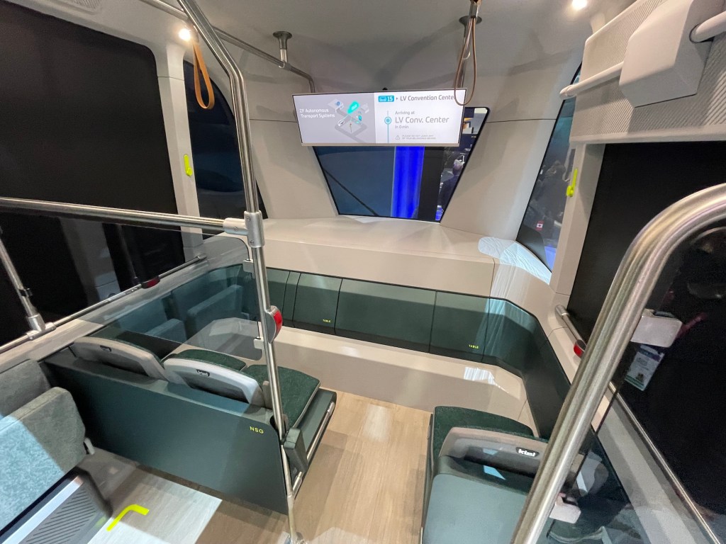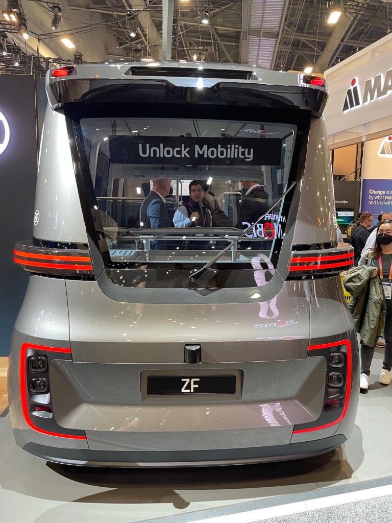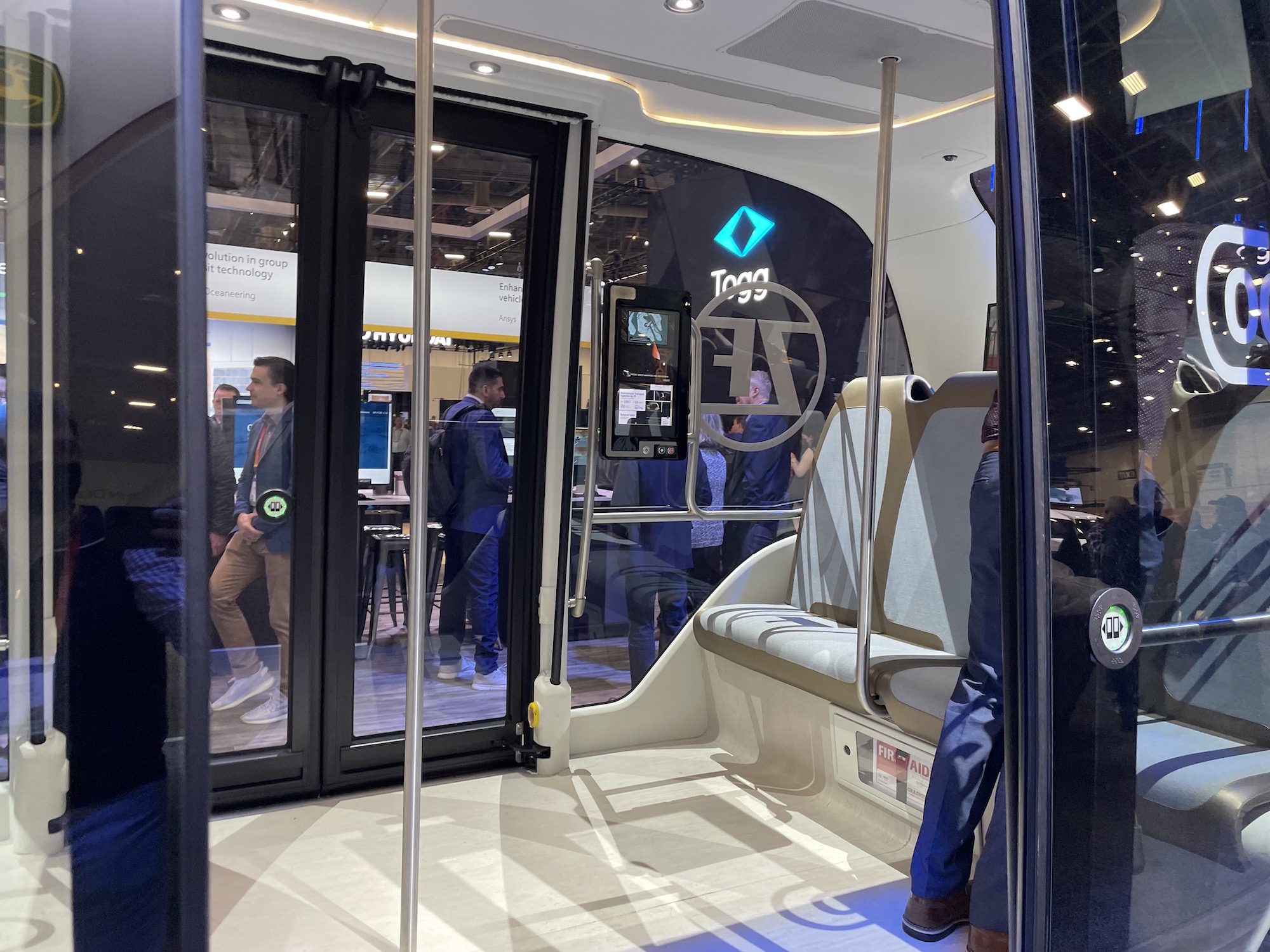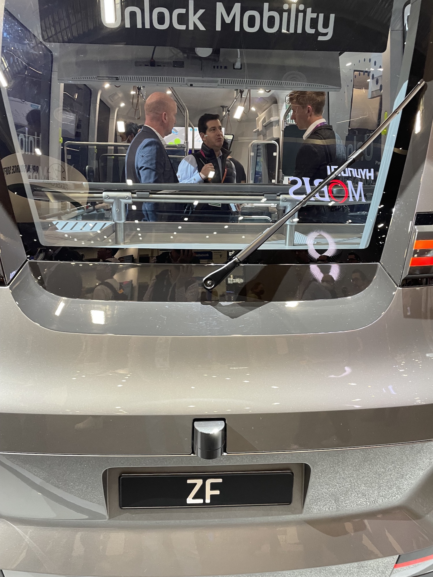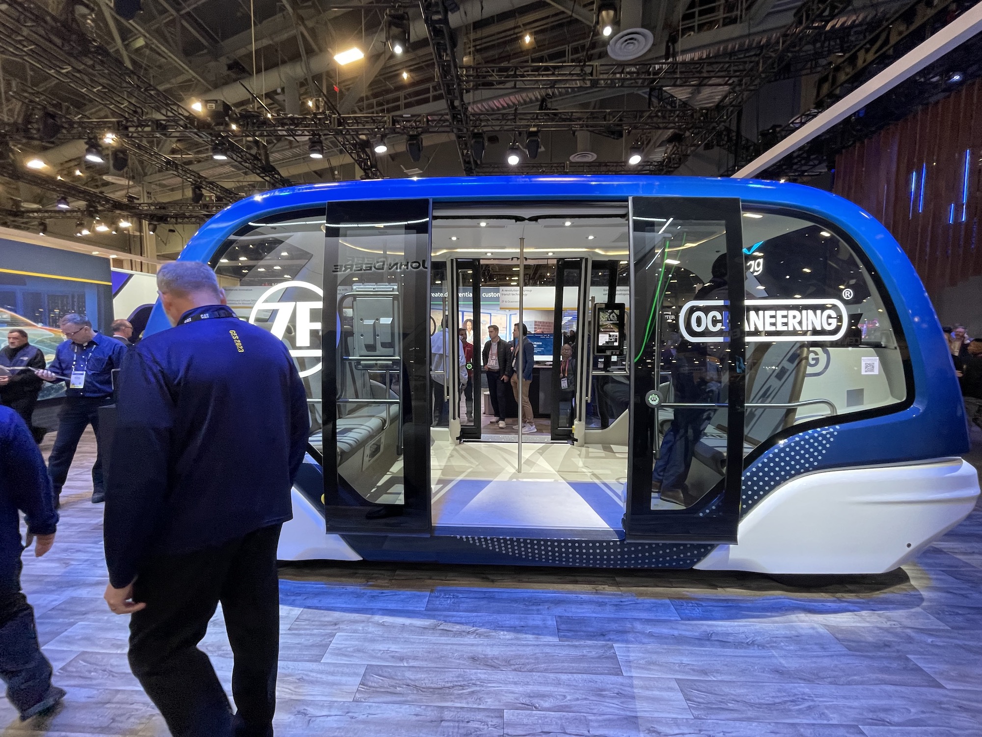 In addition to a number of robot cabs without steering wheels from companies such as Waymo or Zoox, a number of so-called people movers were also on display. ZF from Friedrichshafen presented two of them. Here are some impressions of the two vehicles, which differ in size. The first vehicle still looks like a concept, while the second newly presented one already looks like a practical version…