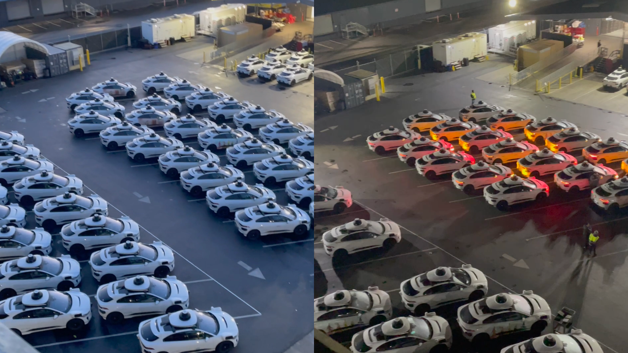 And yet another glance at the Waymo depot. The depot in San Francisco was filmed on the night of January 9th, 2023 and during day on January 10th, 2023. The nighttime video shows one Fiat Chrysler minivan (hybrid) among the nearly 100 Jaguar iPace (all battery electric), while the daytime video shows two.