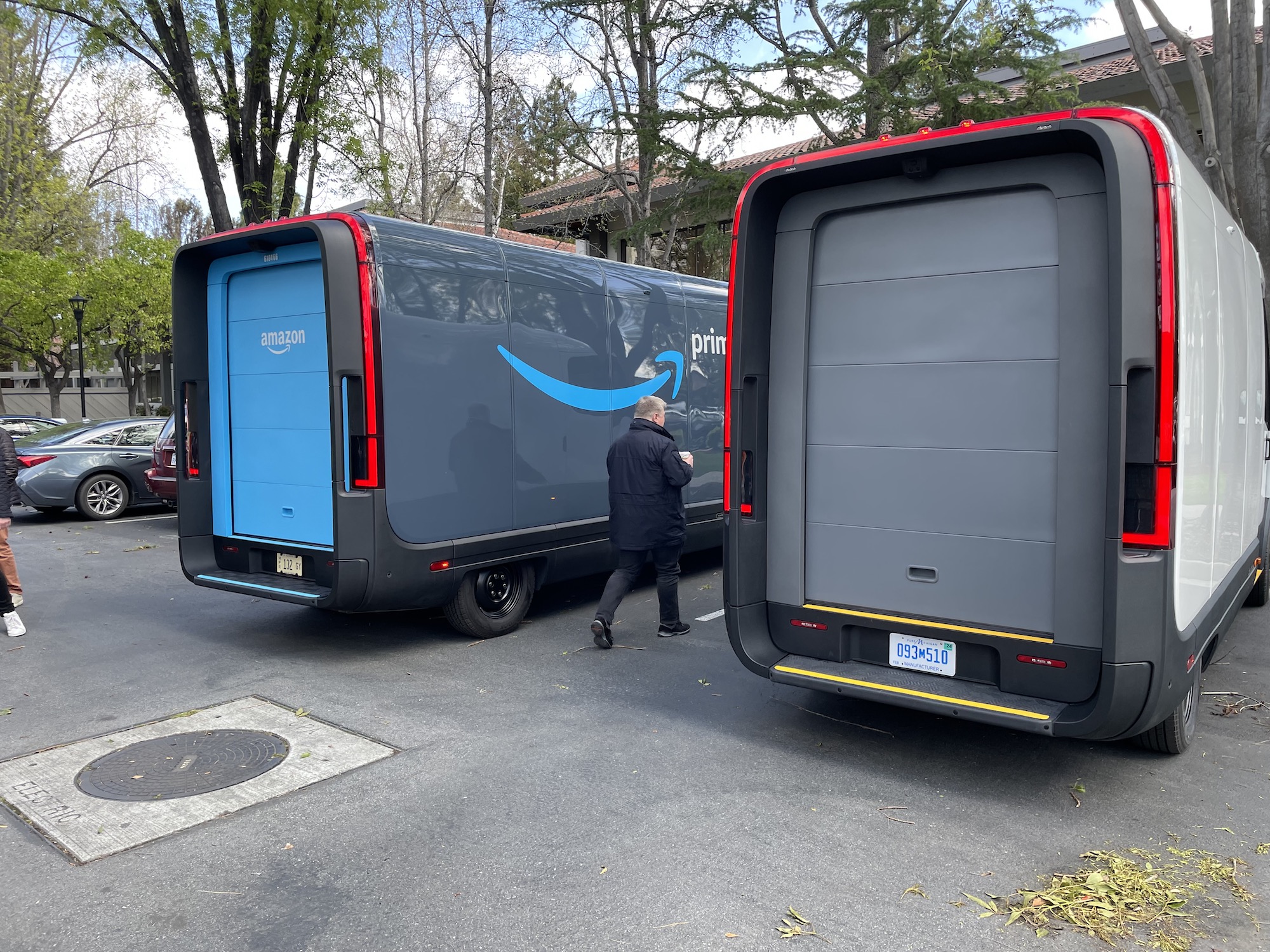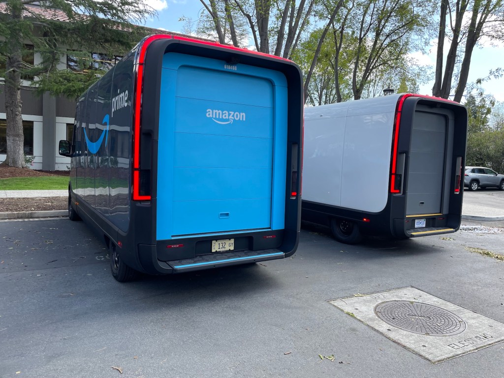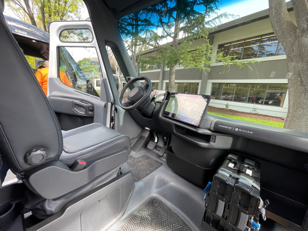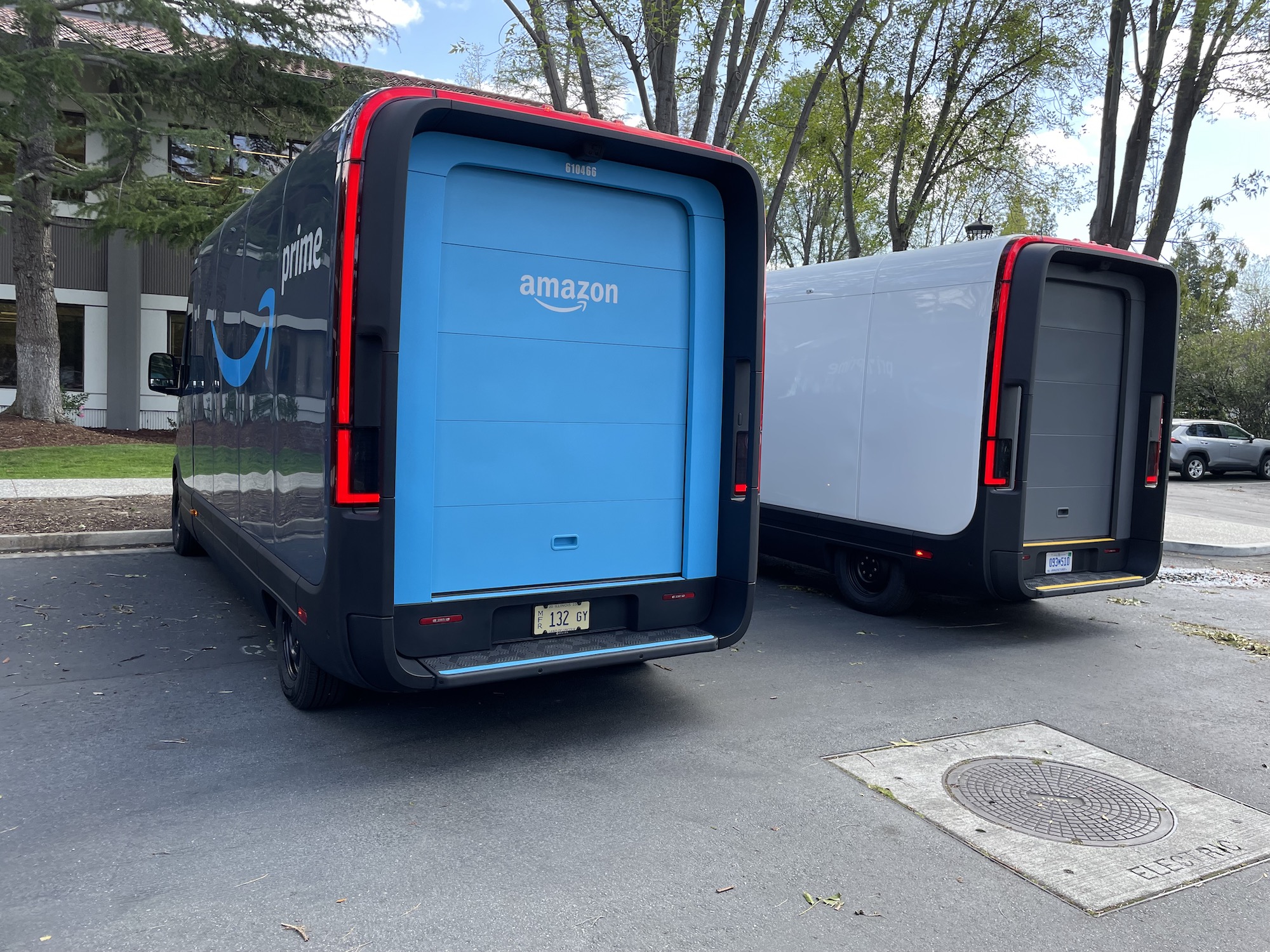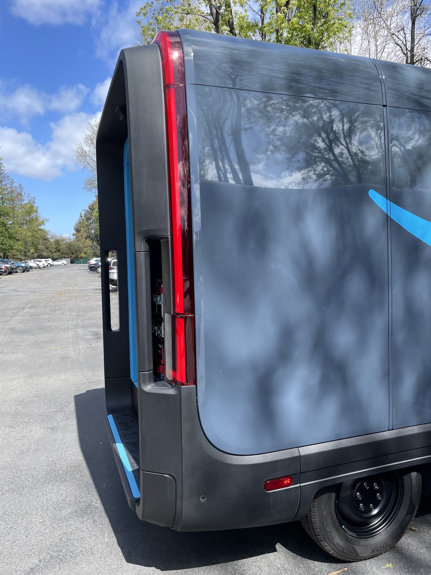 We had the opportunity to inspect two types of these all-electric delivery trucks. The blue one, in the colors of the most important customer and also shareholder in the company, Amazon, is the one used in the U.S. The retail giant has already received more than one thousand of the 100,000 ordered. Another 10,000 are scheduled to be delivered this year.