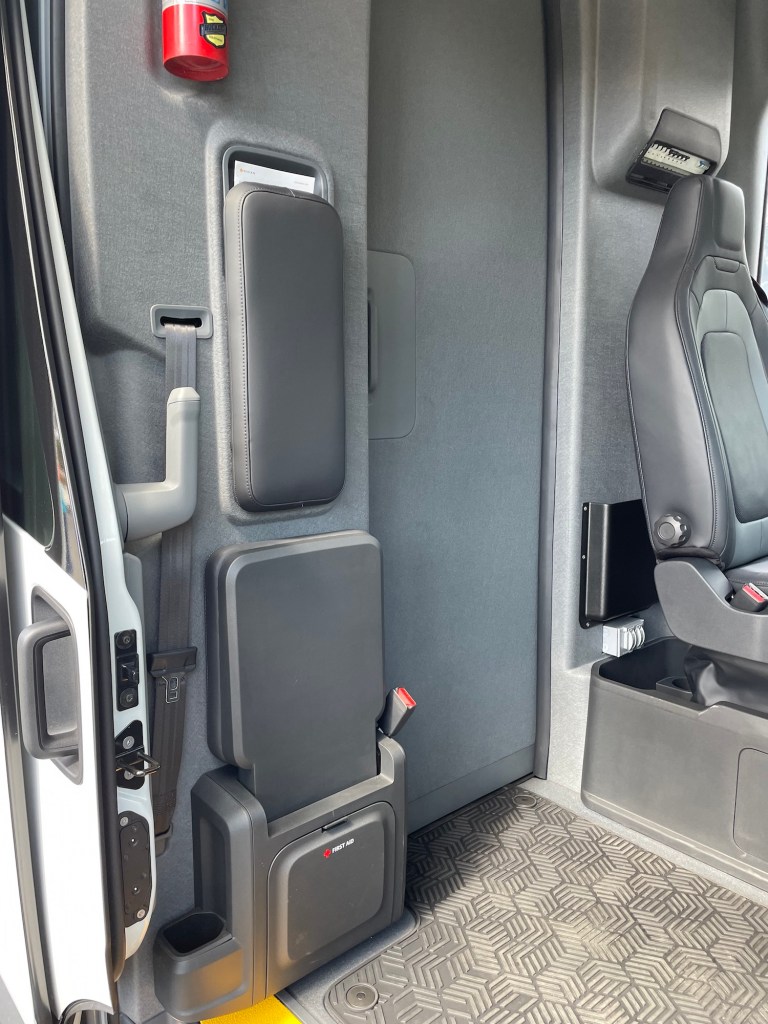 Nice to see are the internals, the large, upright walk-in cabins and cargo compartments with plenty of light. The driver’s cab has a very large windshield, and the equally large side windows allow a good view of what’s going on around the vehicle. The doors close automatically when starting and moving away from the vehicle, and the driver’s doors open when approaching.
