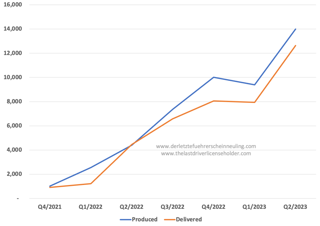 Following the positive news at Tesla, another electric car manufacturer, Rivian, is reporting records. The fledgling company produced 13,992 vehicles and delivered 12,640 in Q2 2023. This represented a 218 percent increase in BEVs produced and 183 percent increase in BEVs delivered compared to the same quarter last year. Analysts’ expectations were 11,000 vehicles, which was exceeded.