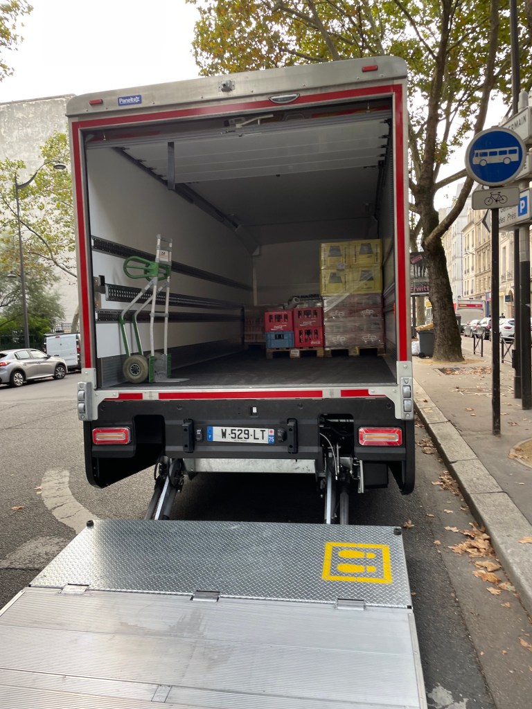 While walking in Paris this morning, suddenly a truck catches my eye. Because of its shape, but also because of the large inscription with a plug. An electric truck from the Swedish company Volta Trucks is standing there, just across the Café de Flore. I lose no time and rush across the Boulevard Saint-Germain to take shameless pictures. I didn’t need to, because three employees of Volta Trucks were making a delivery with this truck, saw me and invited me to take a seat inside and ask questions.