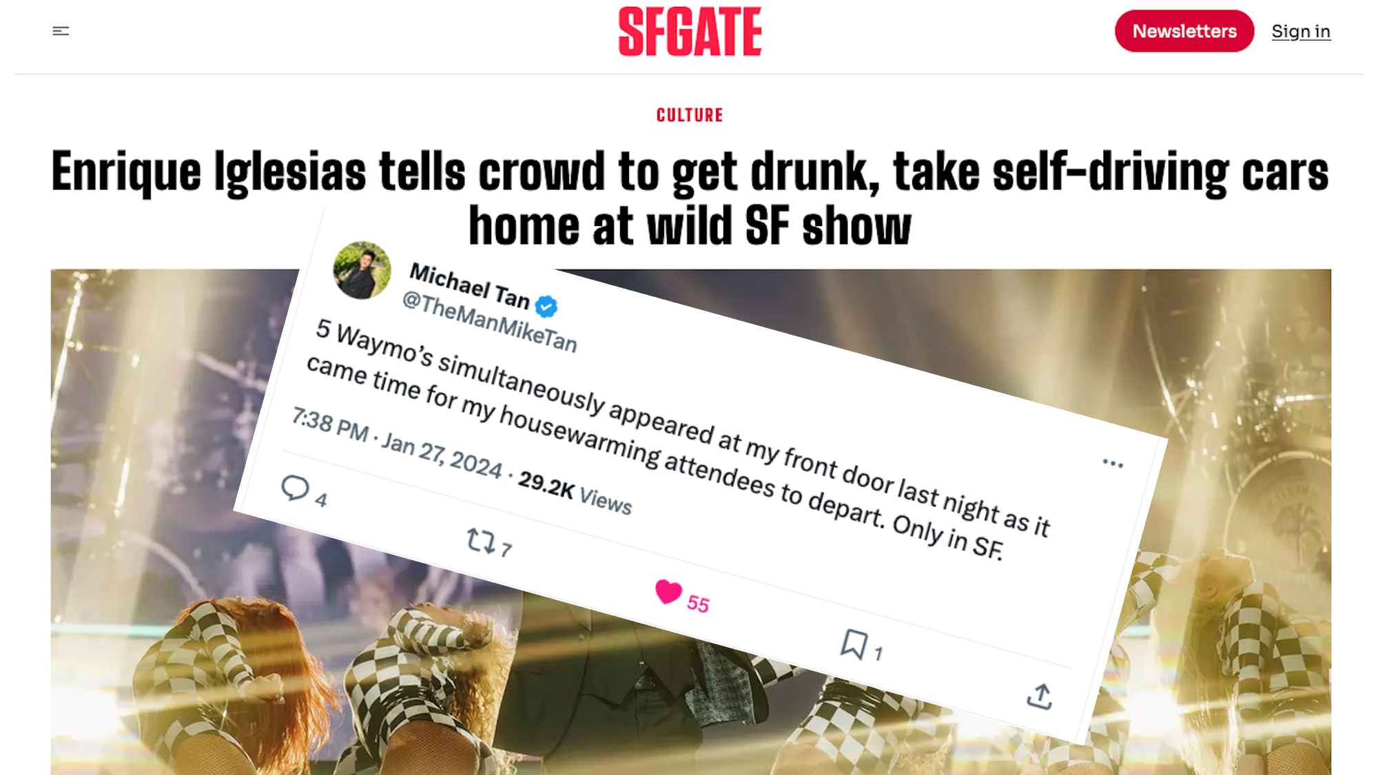 Enrique Iglesias tells crowd to get drunk, take self-driving cars home at wild SF show