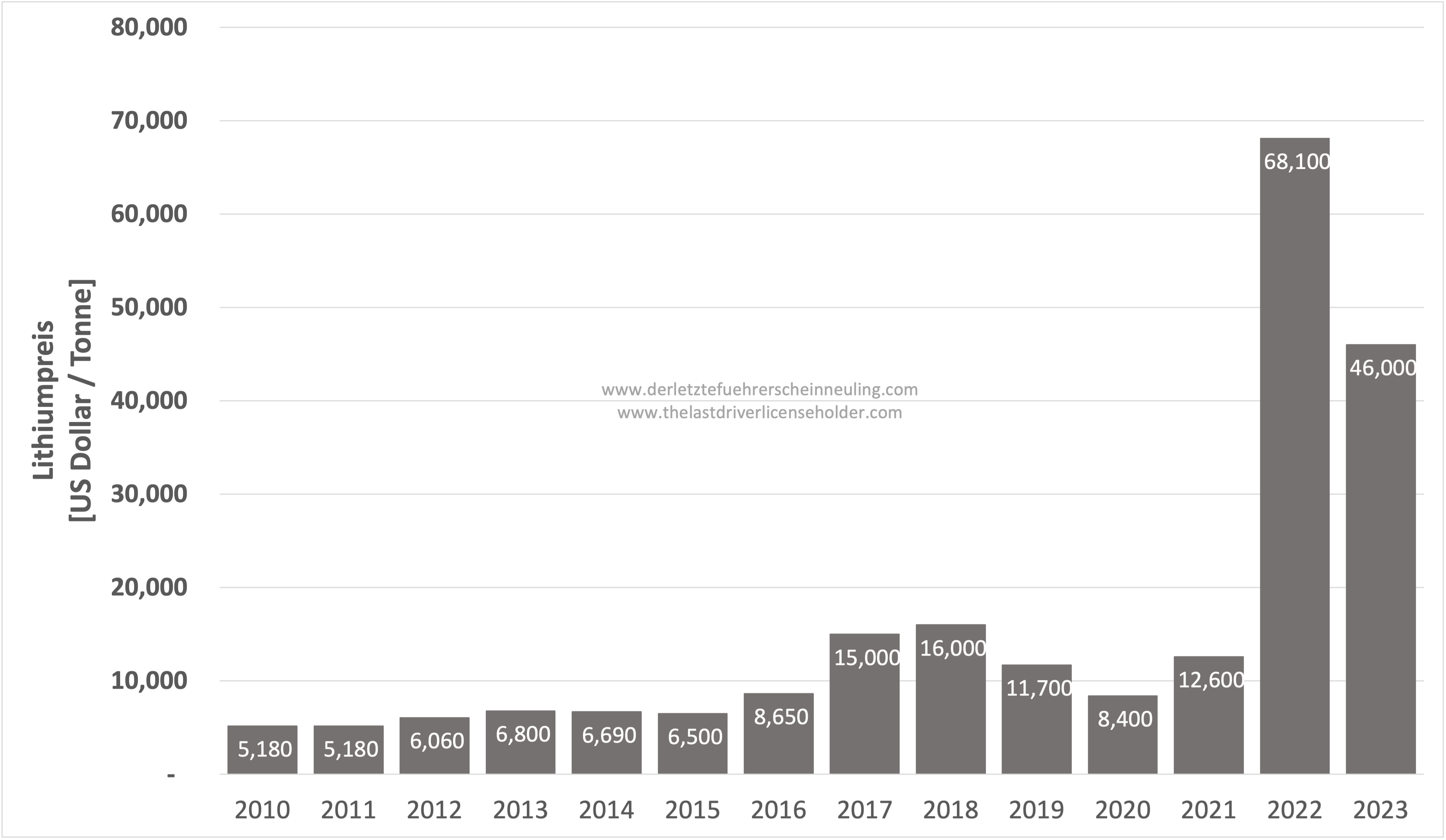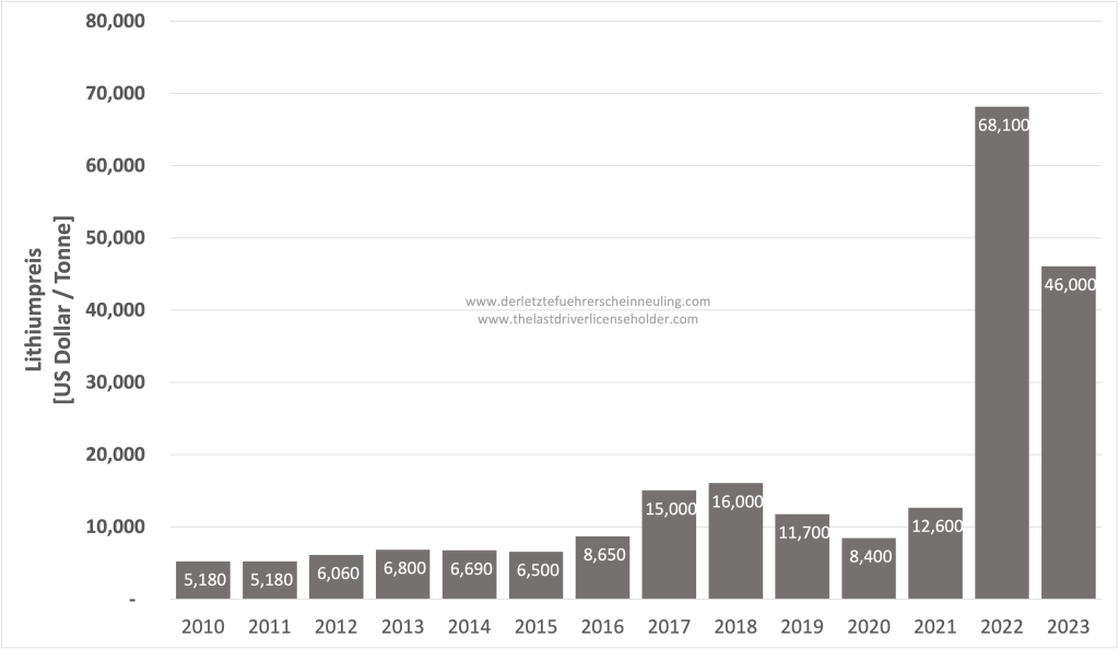 Secondly, traditional manufacturers are realizing how challenging the development and production of a competitive electric car is – keyword: production hell – and how low their profit margin is. Or rather: how much the late converts are losing with electric cars. Because by jumping on the electric car boom late, which they refused to believe in for a long time, they missed out on securing resources at favorable prices. The example of lithium, which is needed for batteries, quickly makes this clear.