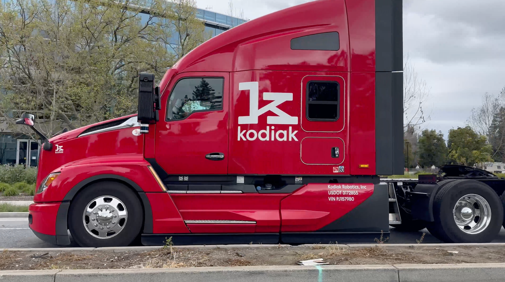 This Kodiak truck was spotted near their headquarter on Shoreline Blvd in Mountain View on March 27th, 2024 at around 2pm PSD. Note the now minimal sensor arrangement, mostly hidden in the side mirrors.