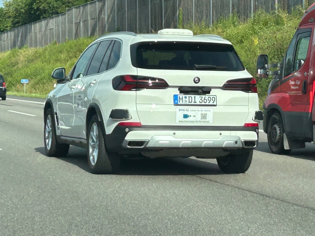 This test vehicle from BMW was spotted by Dino Konrad on the A8 highway near Augsburg in the direction of Stuttgart. There were four sensors at the front, but no LIDAR in the front roof area.