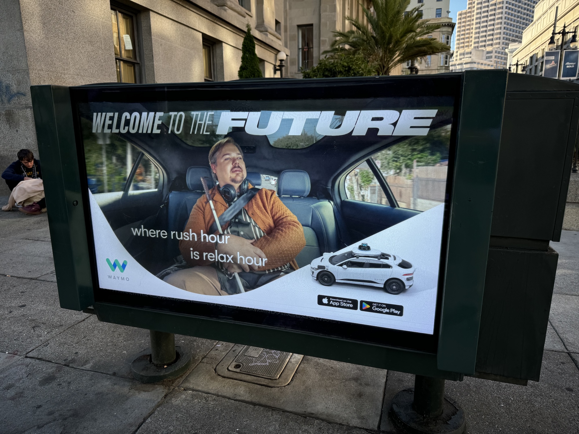 And now Waymo has also started massively advertising its robotaxi service. This is a sign of the self-confidence Waymo is brimming with. Here’s a sample at a bus stop on Mission Street at the intersection of 5th Street.