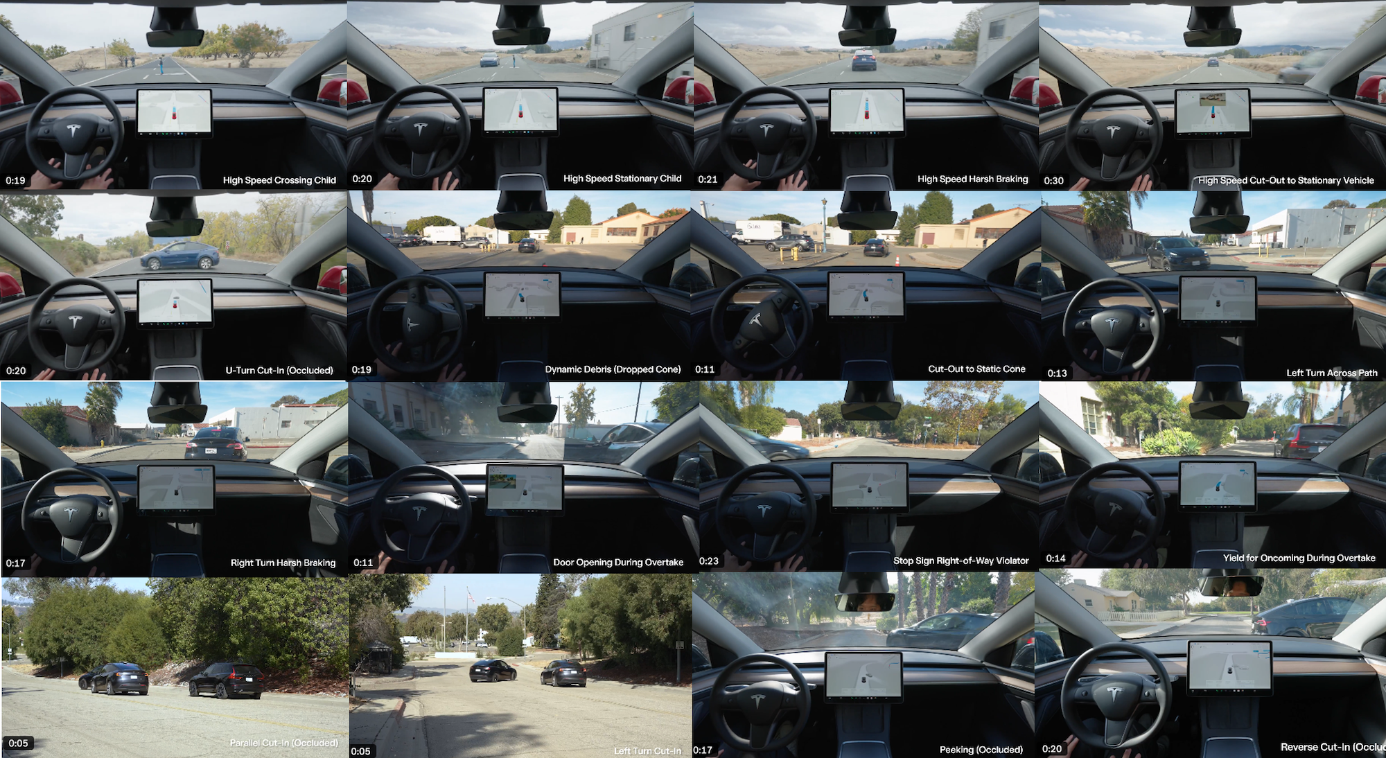 Now Tesla has also shown videos of 16 test scenarios for common traffic incidents for the first time, in which Tesla Full Self Driving (FSD) is being practiced.