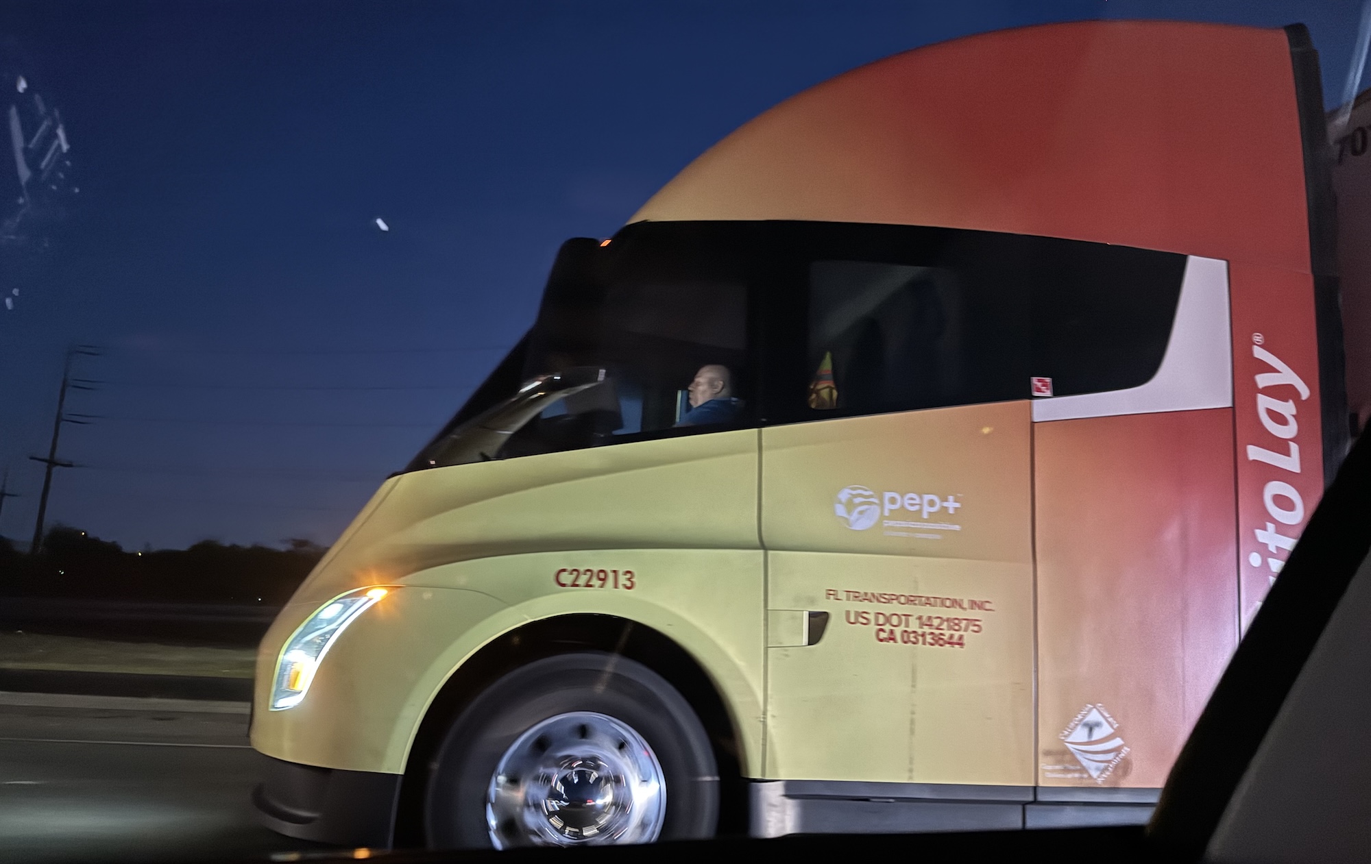 This Tesla Semi Truck owned and operated by Frito Lays was spotted on HWY 580 on Wednesday, December 4th, 2024.