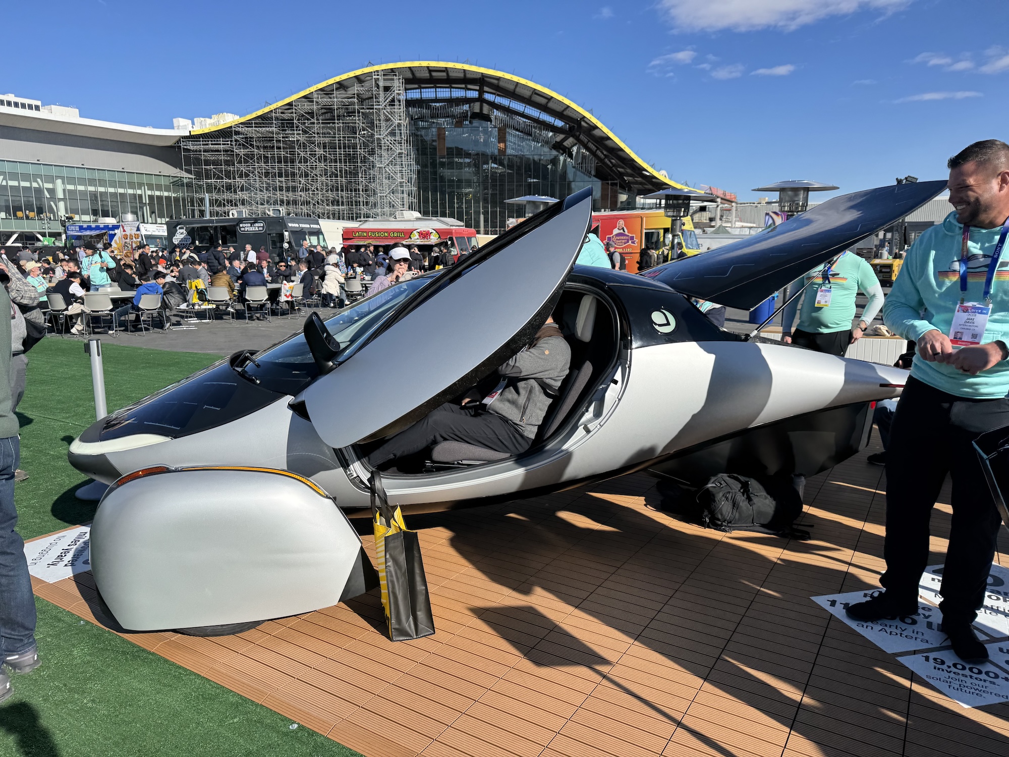 The name of the vehicle has been bandied about in the media time and again, and I once even saw it on display in a shopping mall in Santa Clara. Occasionally the Aptera also appeared in films such as Star Trek and Atlas. Now, after some financial difficulties, the three-wheeled, two-seater and very futuristic-looking vehicle seems to be going into production after all. Production is due to start at the end of 2025 and the company is also advertising its vehicle at CES 2025. Here are a few photos: